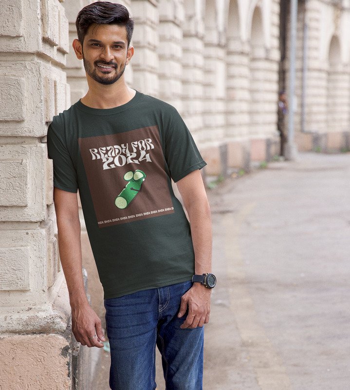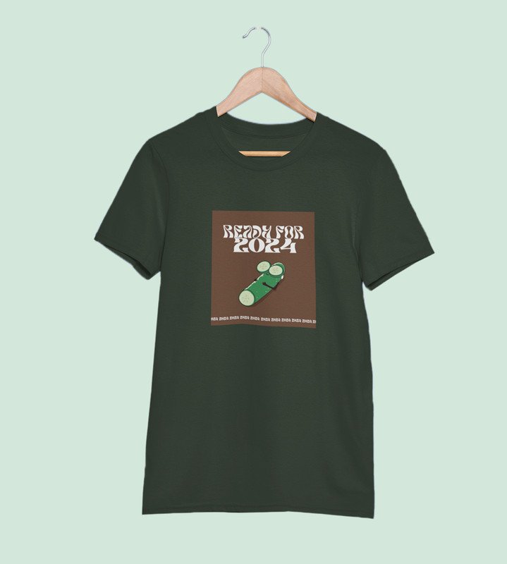 Get Ready For 2024 Green Printed T-shirt For Mens On New Year Theme Best Gift For New Year