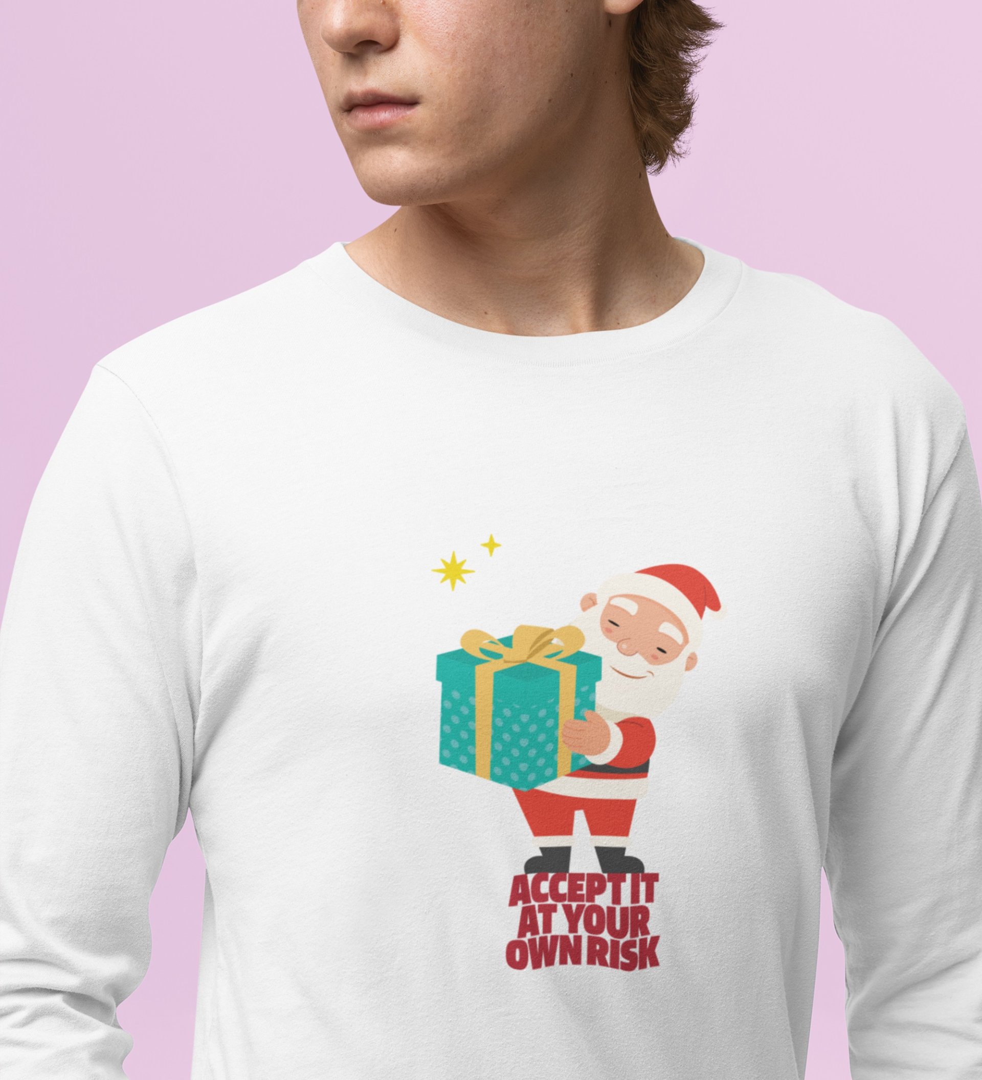 Gift Man Santa: Perfectly DesignedFull Sleeve T-shirt White Best Gift For Boys Girls