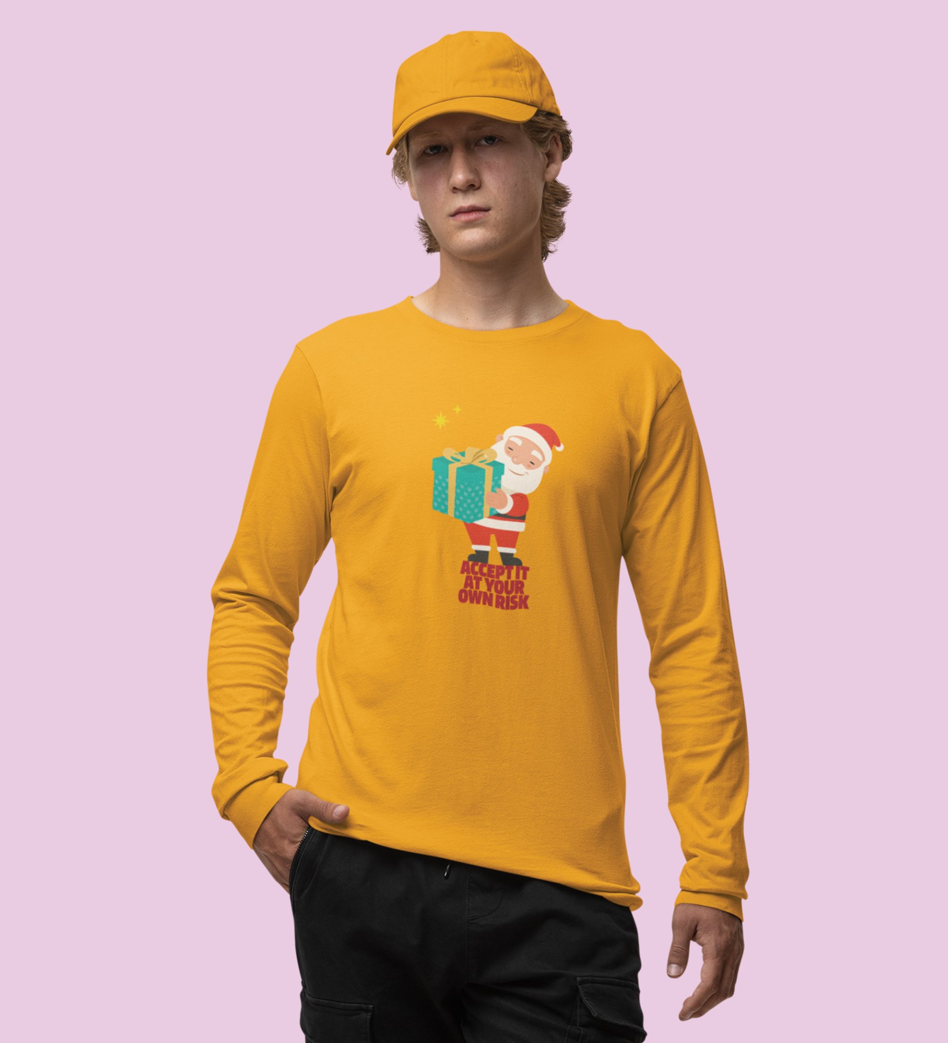 Gift Man Santa: Perfectly DesignedFull Sleeve T-shirt Yellow Best Gift For Boys Girls