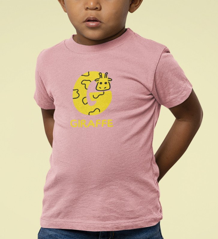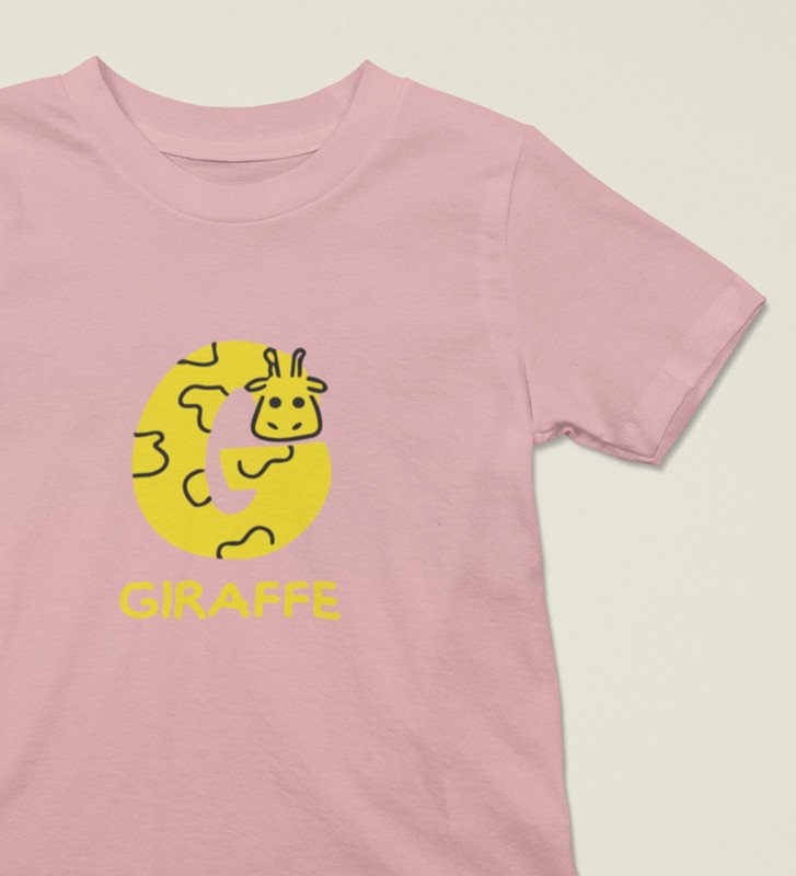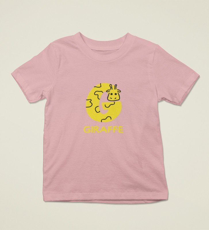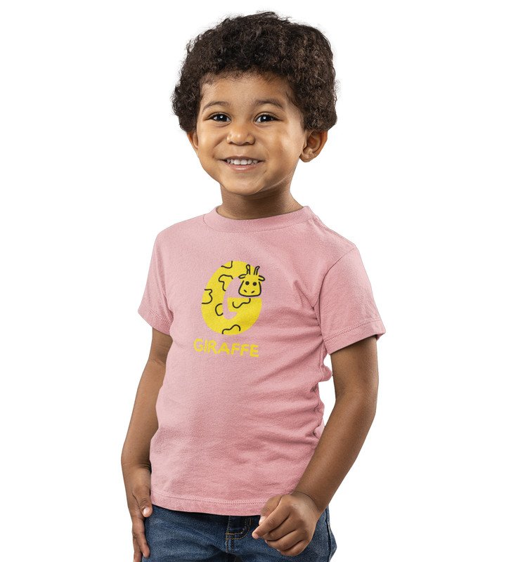 Giraffe, Boys Printed Crew Neck Tshirt (Baby pink)