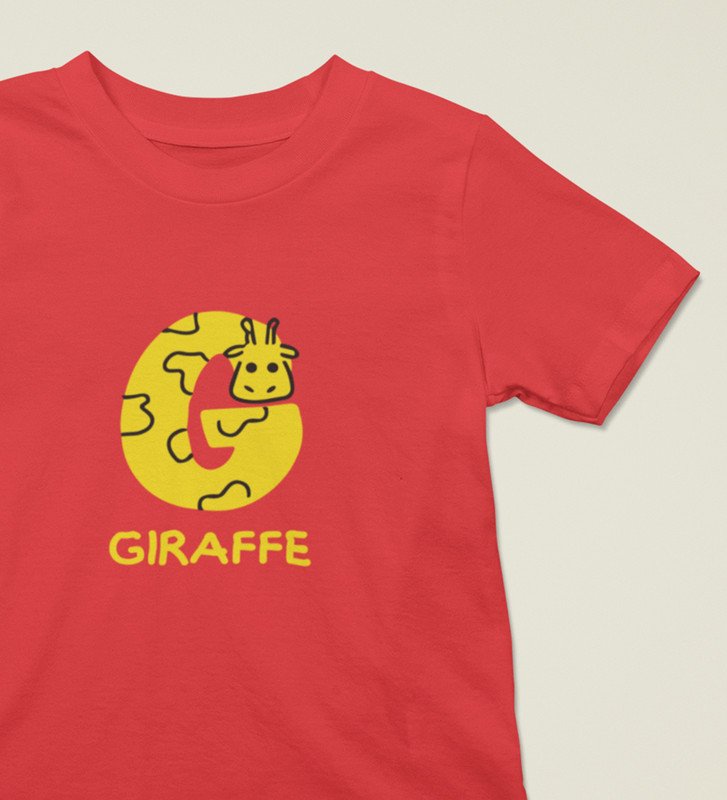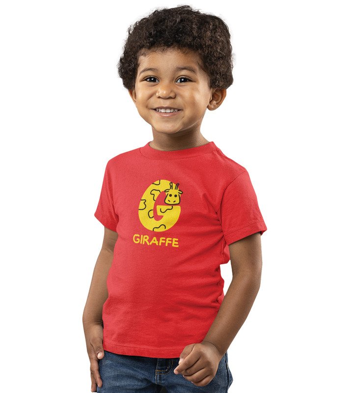 Giraffe, Boys Printed Crew Neck Tshirt (Red)