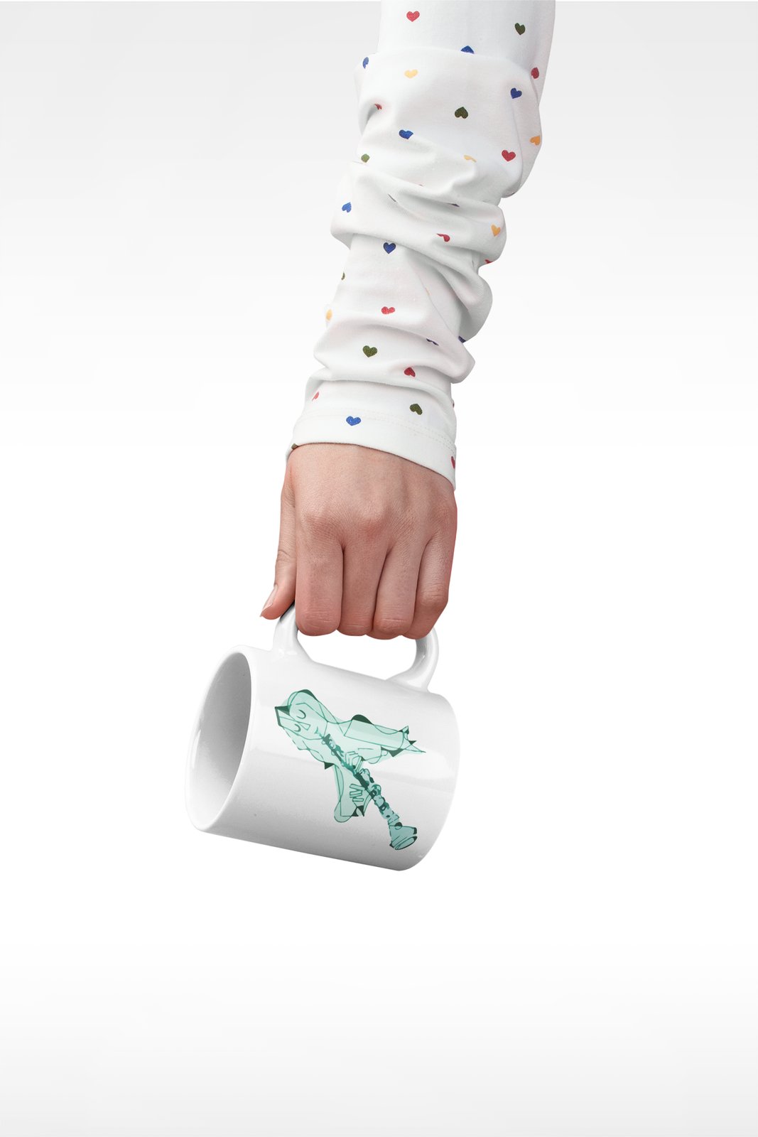 Girl Playing Shenai - music themed printed ceramic white coffee and tea mugs/ cups for music lovers