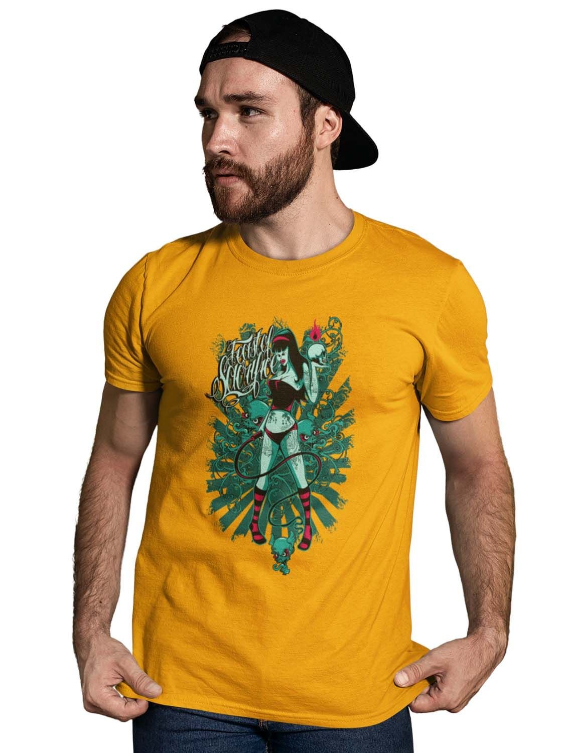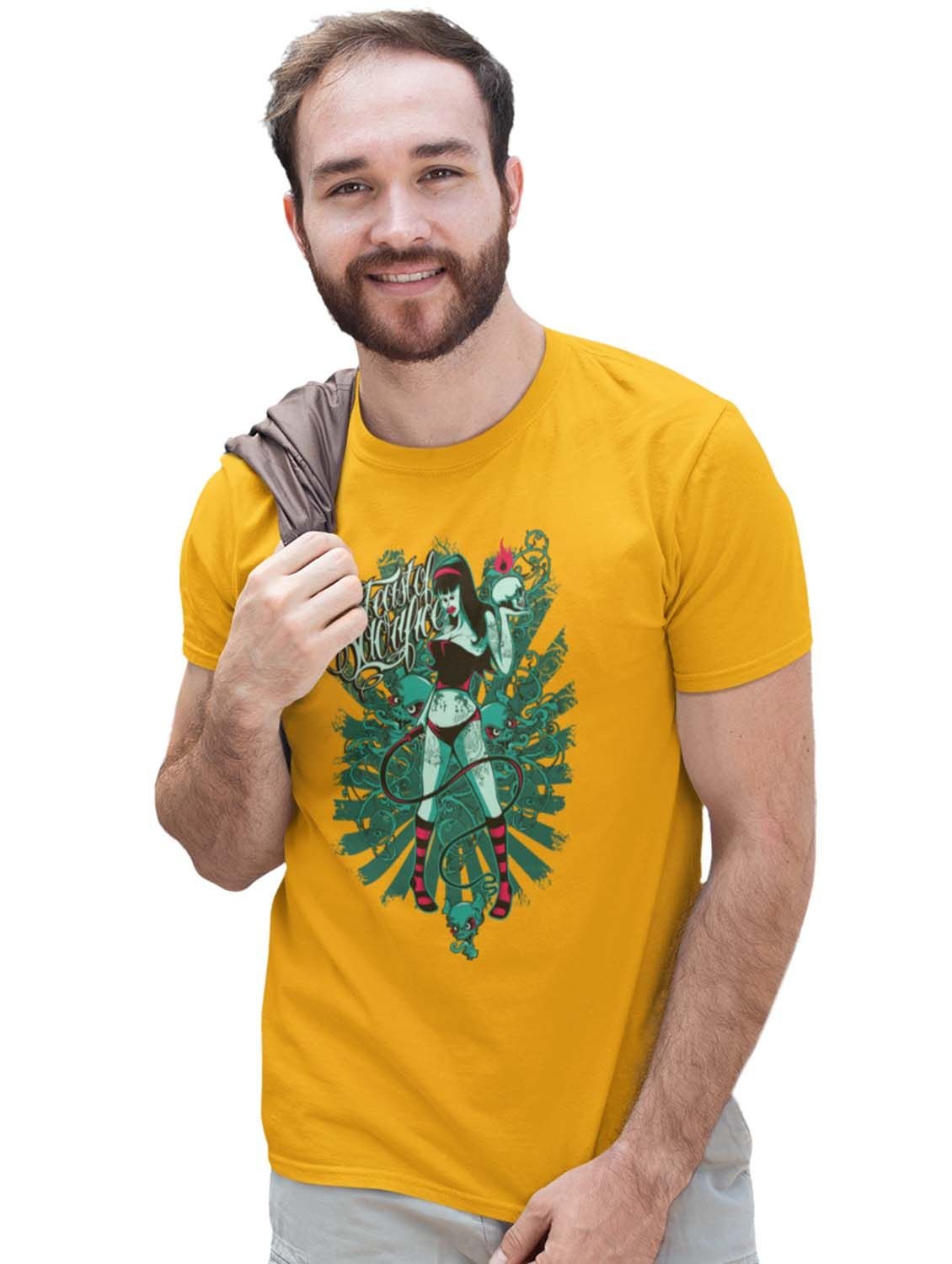 Feast Of Sacrifice Yellow Round Neck Cotton Half Sleeved T-Shirt with Printed Graphics
