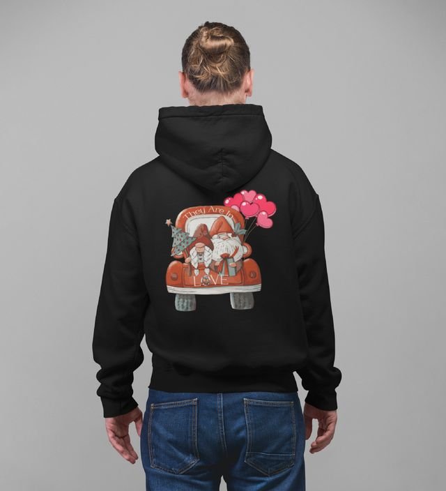 Gnomes Happily Seated in a Car Enjoying a Lovely Date Printed Black Cotton Hoodie