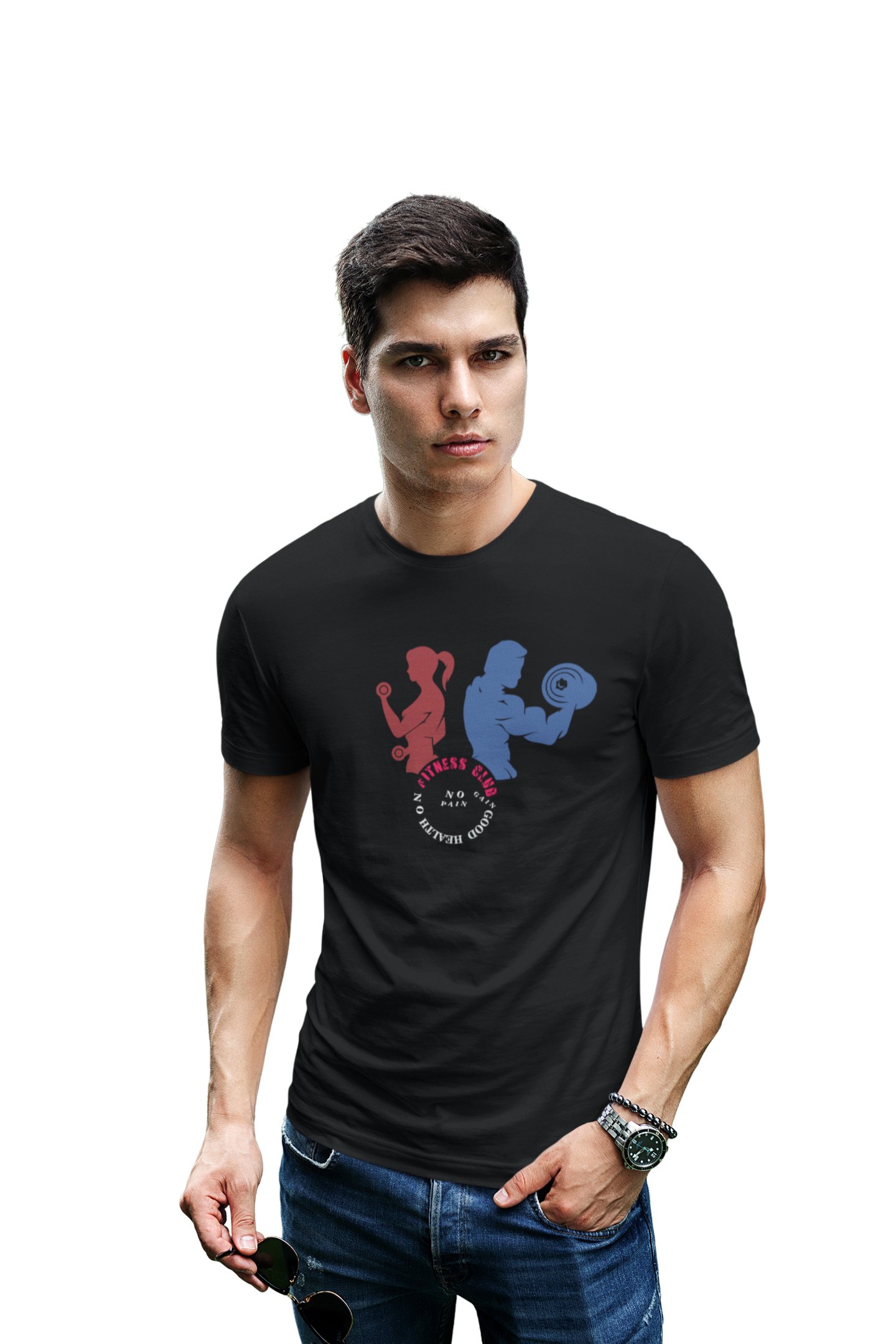 Good Health On, Fitness Club, No Pain, No Gain, Round Neck Gym Tshirt (Black Tshirt) - Clothes for Gym Lovers - Suitable for Gym Going Person - Foremost Gifting Material for Your Friends and Close Ones