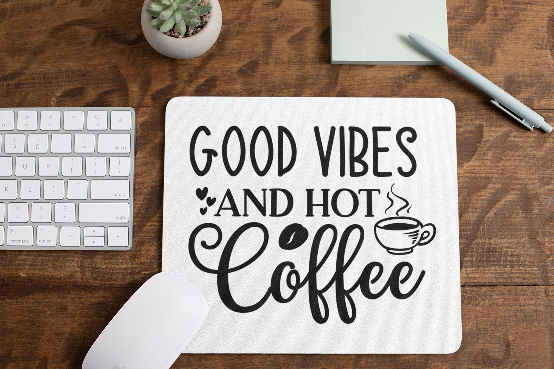Good Vibes And Hot Coffee- White - Designable Mousepad