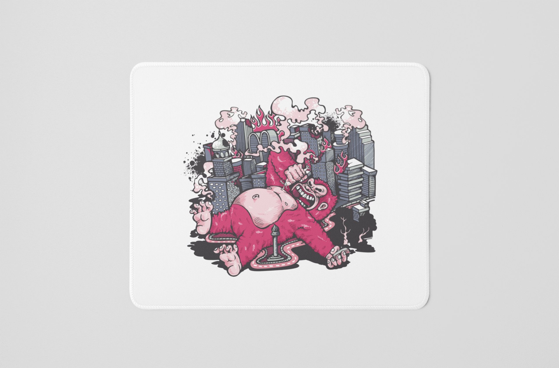 Gorilla Sleeping In Between Buildings - Printed Animated Mousepads