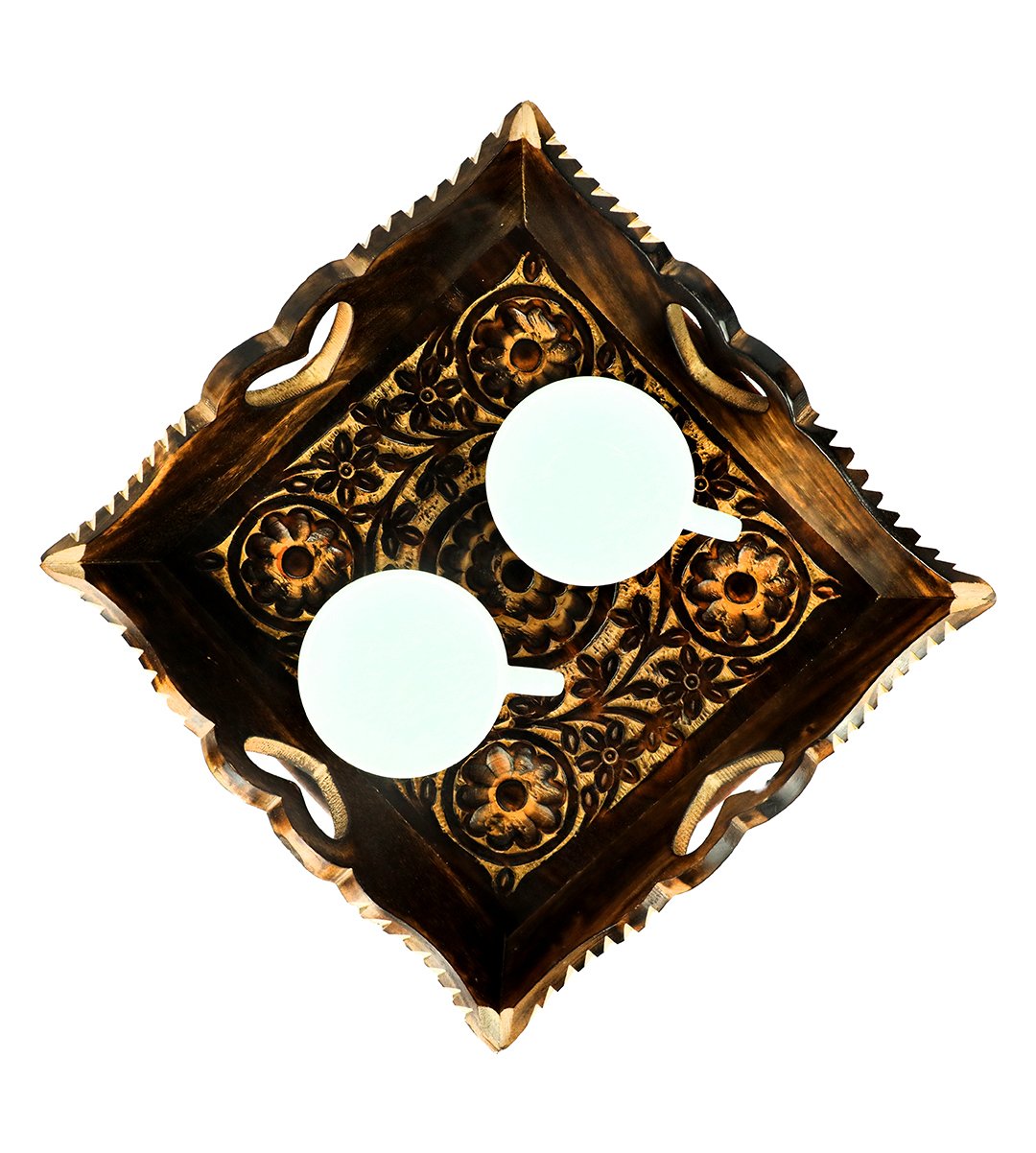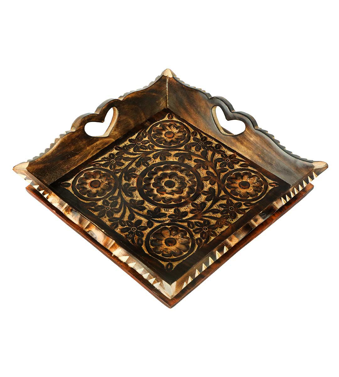 Two hearts in handle tray are used in dining tables. It looks classy because of its unique design. It is used in kitchen. It can be transfer to one person to another while having their meal. Everyone has their favourite one to choose from. It looks good in transparent cupboards or also you can keep it in dining table. We have brought you many wooden and stylish wooden trays of different designs. Grab it now. Add an element of beauty to your dining table. It could be a memorable gift for birthdays, marriage parties, house warming, grah prawesh, shop inaugration, anniversary parties etc, it can be a memorable return gift. Gift it to yourself, spouse, mother, relative or your loved ones. All Occasion Gift.
