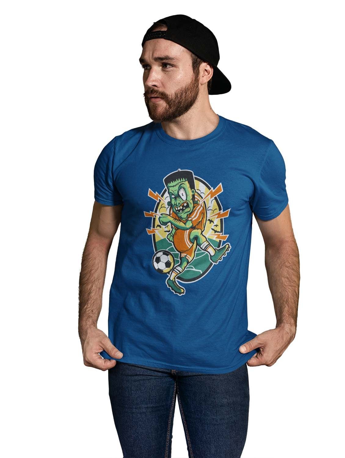 Frankinston's Soccer Blue Round Neck Cotton Half Sleeved T-Shirt with Printed Graphics