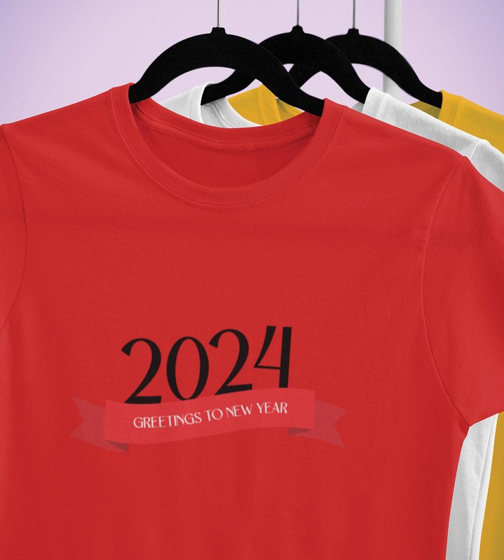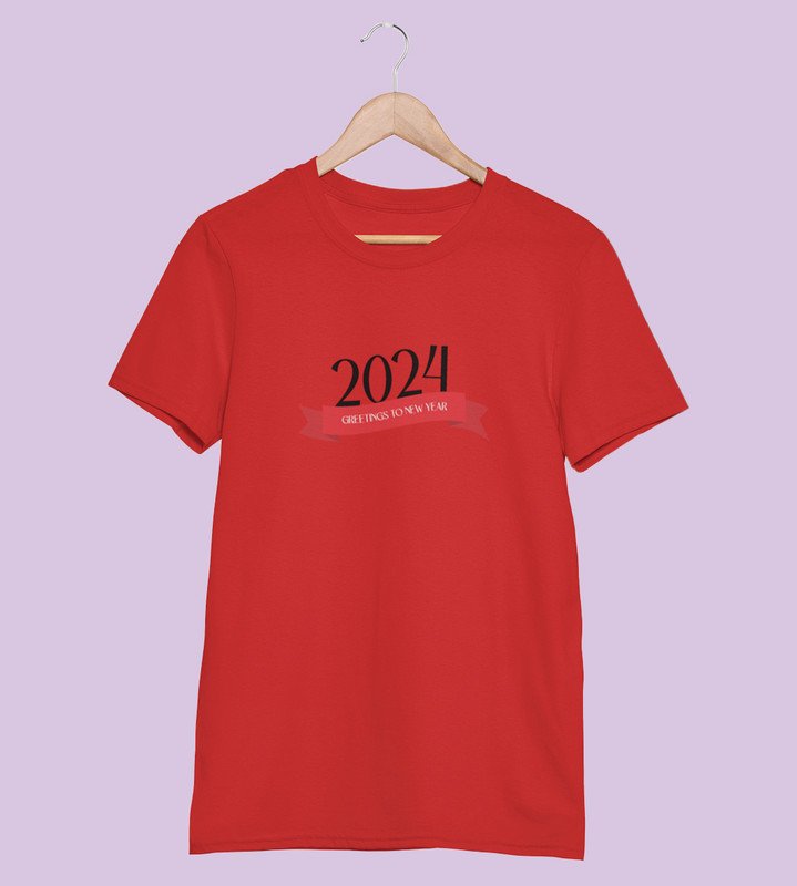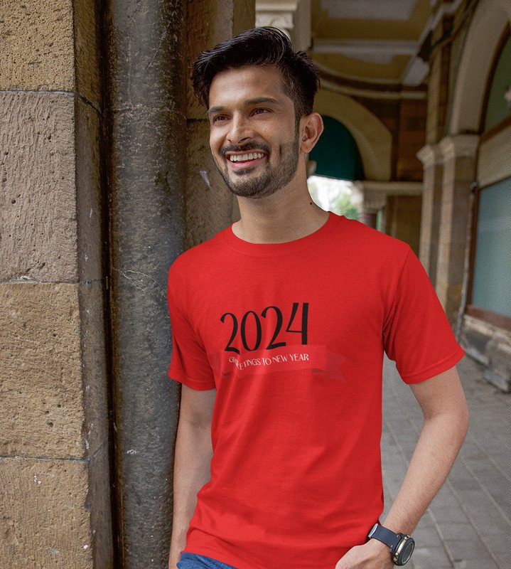 Greetings For New YearRed New Year Printed T-shirt For Mens