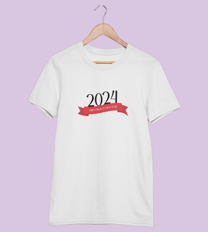 Greetings For New YearWhite New Year Printed T-shirt For Mens