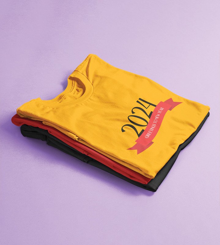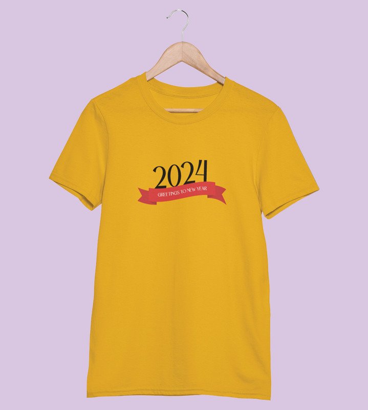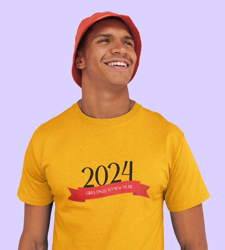Greetings For New YearYellow New Year Printed T-shirt For Mens