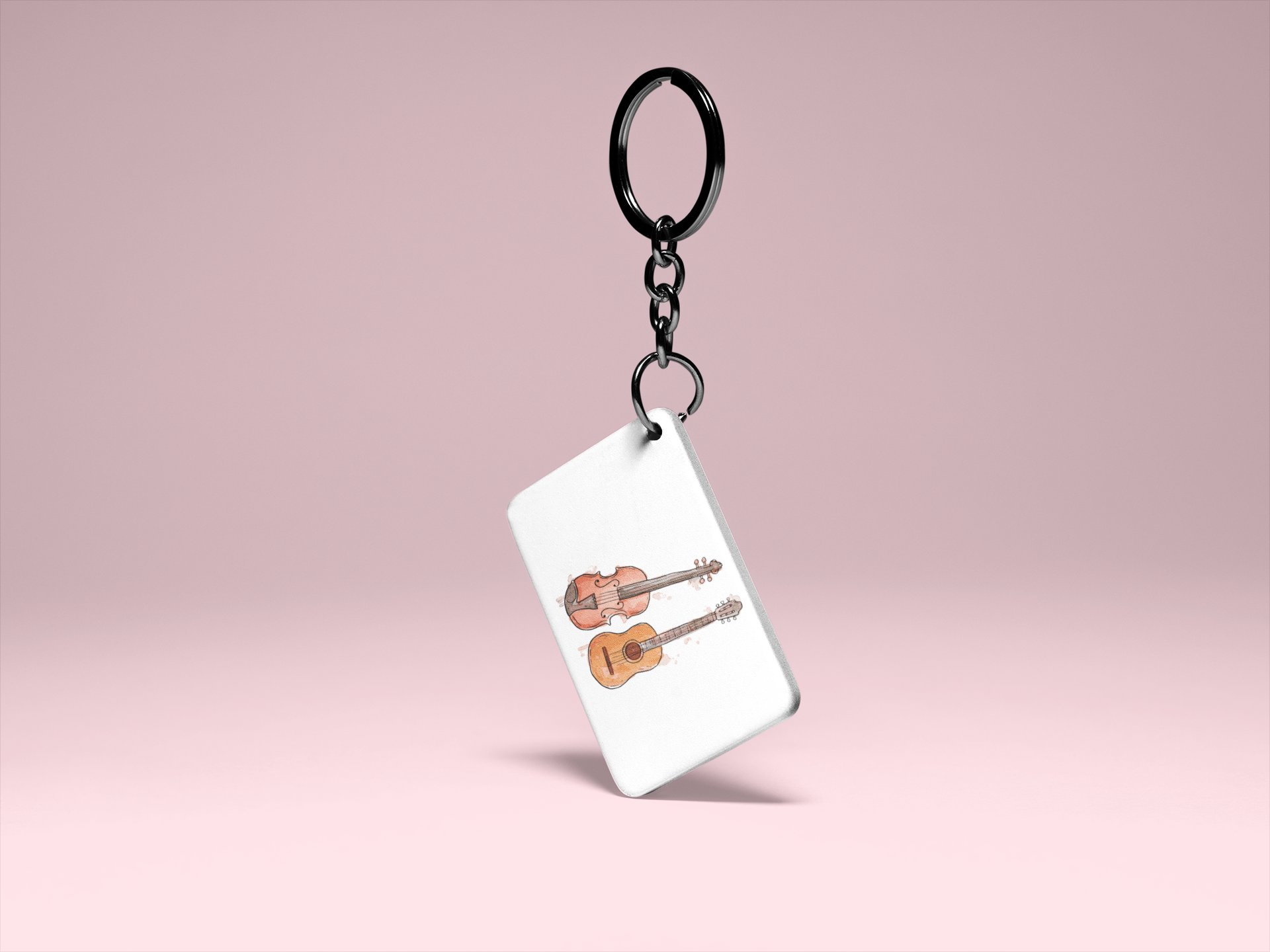 Guitar and violin -White -Designable Musicllnstrument Keychain ( Combo Set Of 2)