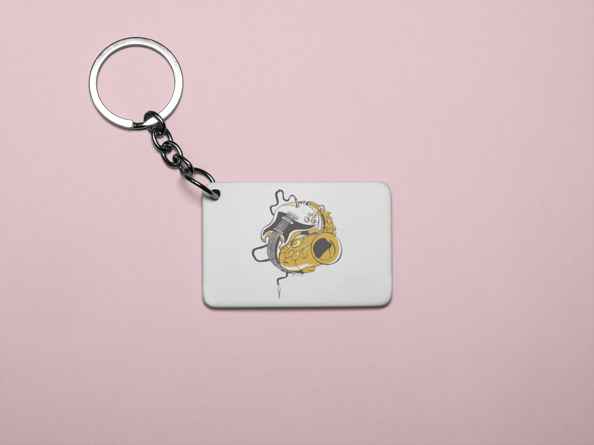 Guitar-White -Designable Musicllnstrument Keychain ( Combo Set Of 2)