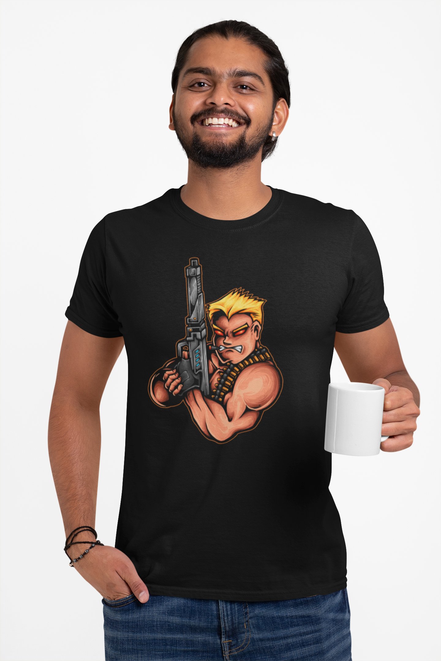 Gun man Illustration art -round crew neck cotton tshirts for men