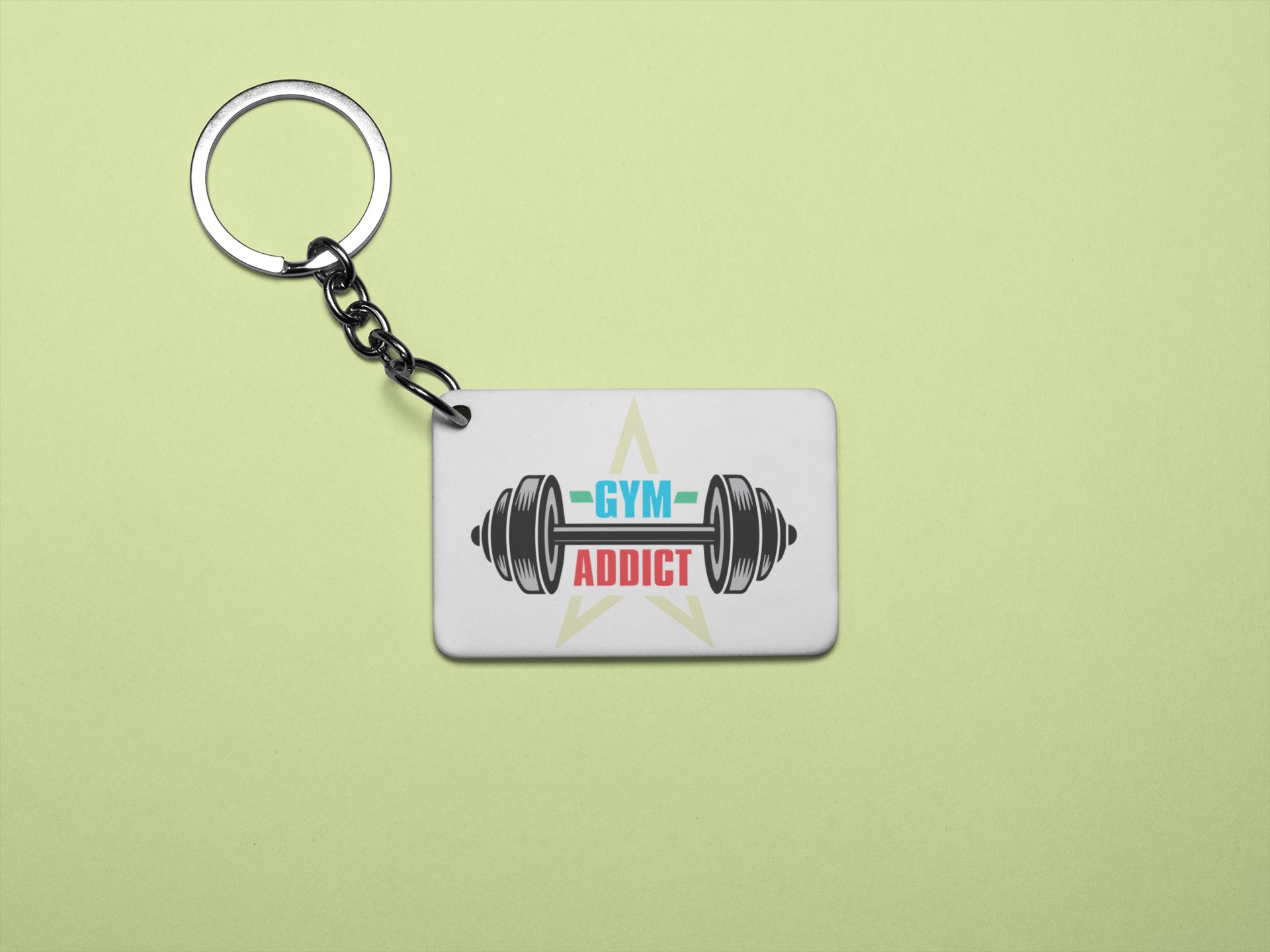 Gym Addict, (BG White, Red and Yellow), Barbell In Middle - Printed Keychains for gym lovers(Pack of 2)