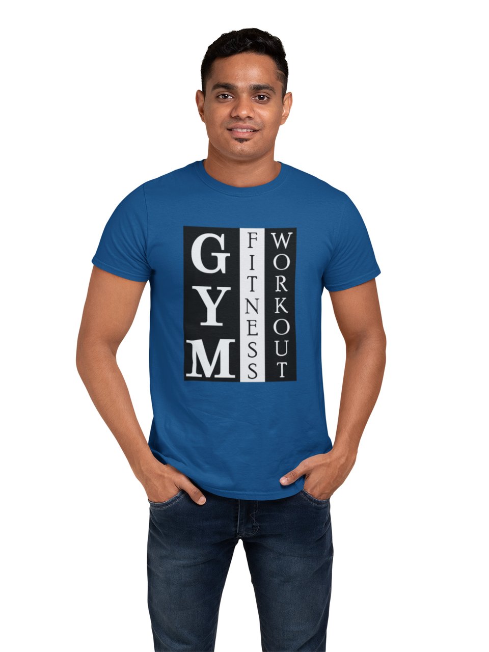 Gym, Fitness, Workout, Round Neck Gym Tshirt (Vertically) (Blue Tshirt) - Clothes for Gym Lovers - Suitable for Gym Going Person - Foremost Gifting Material for Your Friends and Close Ones