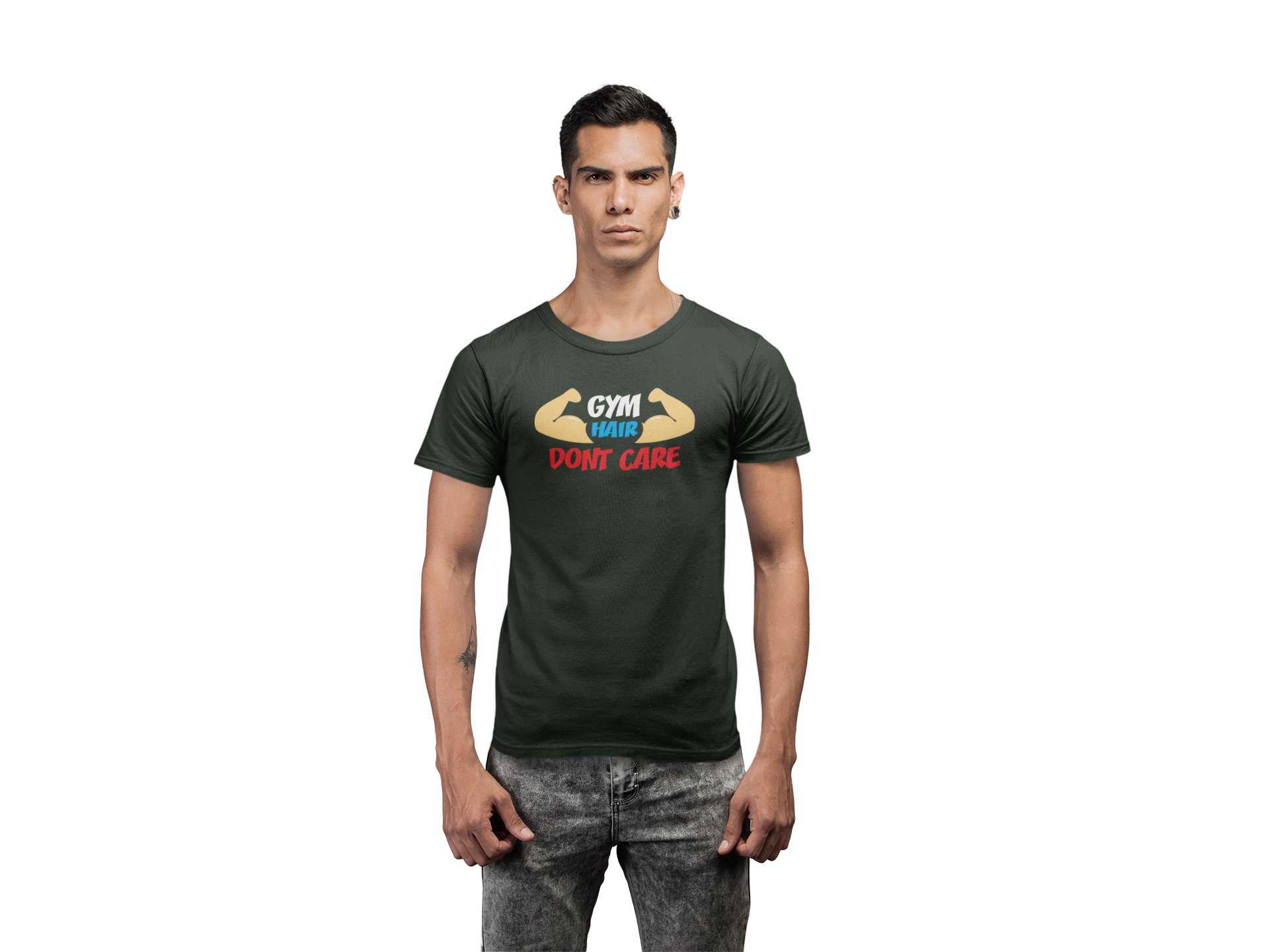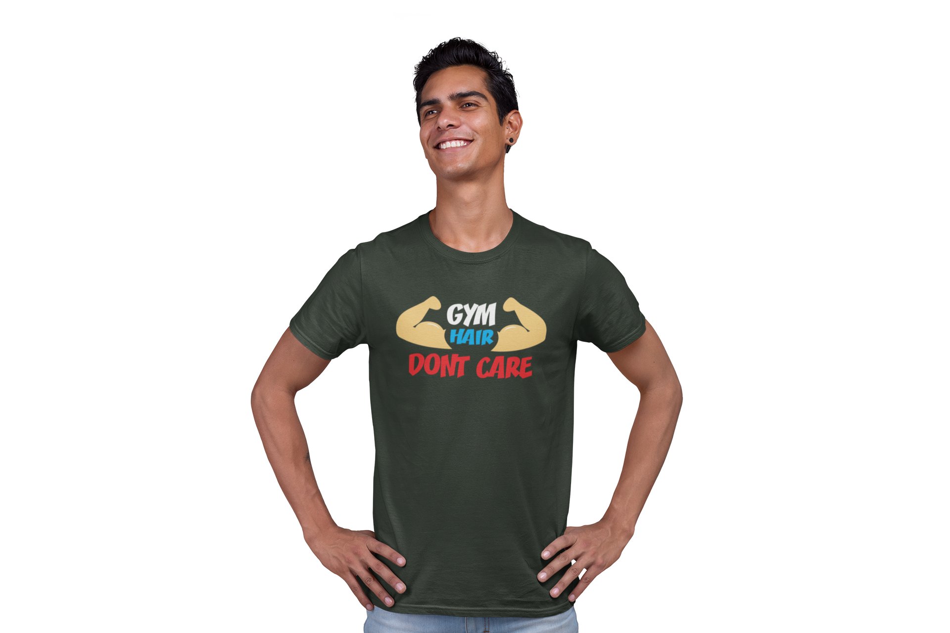 Gym Here, Don't Care, Round Neck Gym Tshirt - Foremost Gifting Material for Your Friends and Close Ones