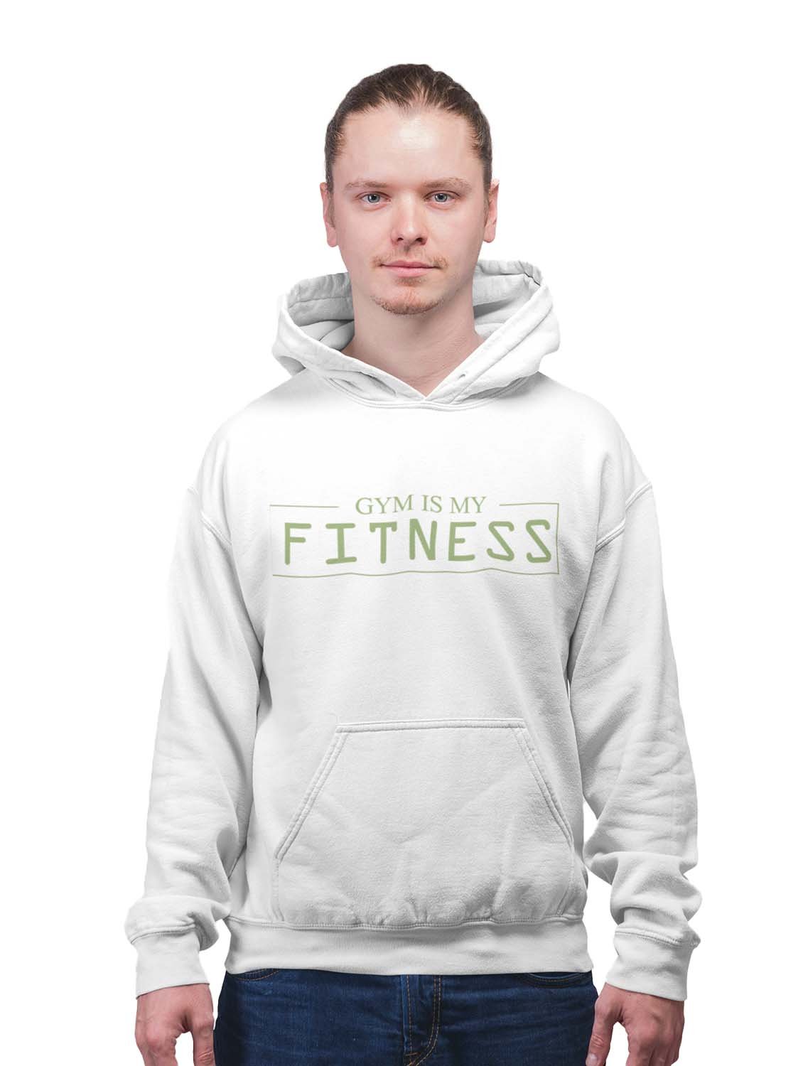 Gym is my Fitness, (BG Green) printed activewear white hoodies for winter casual wear specially for Men