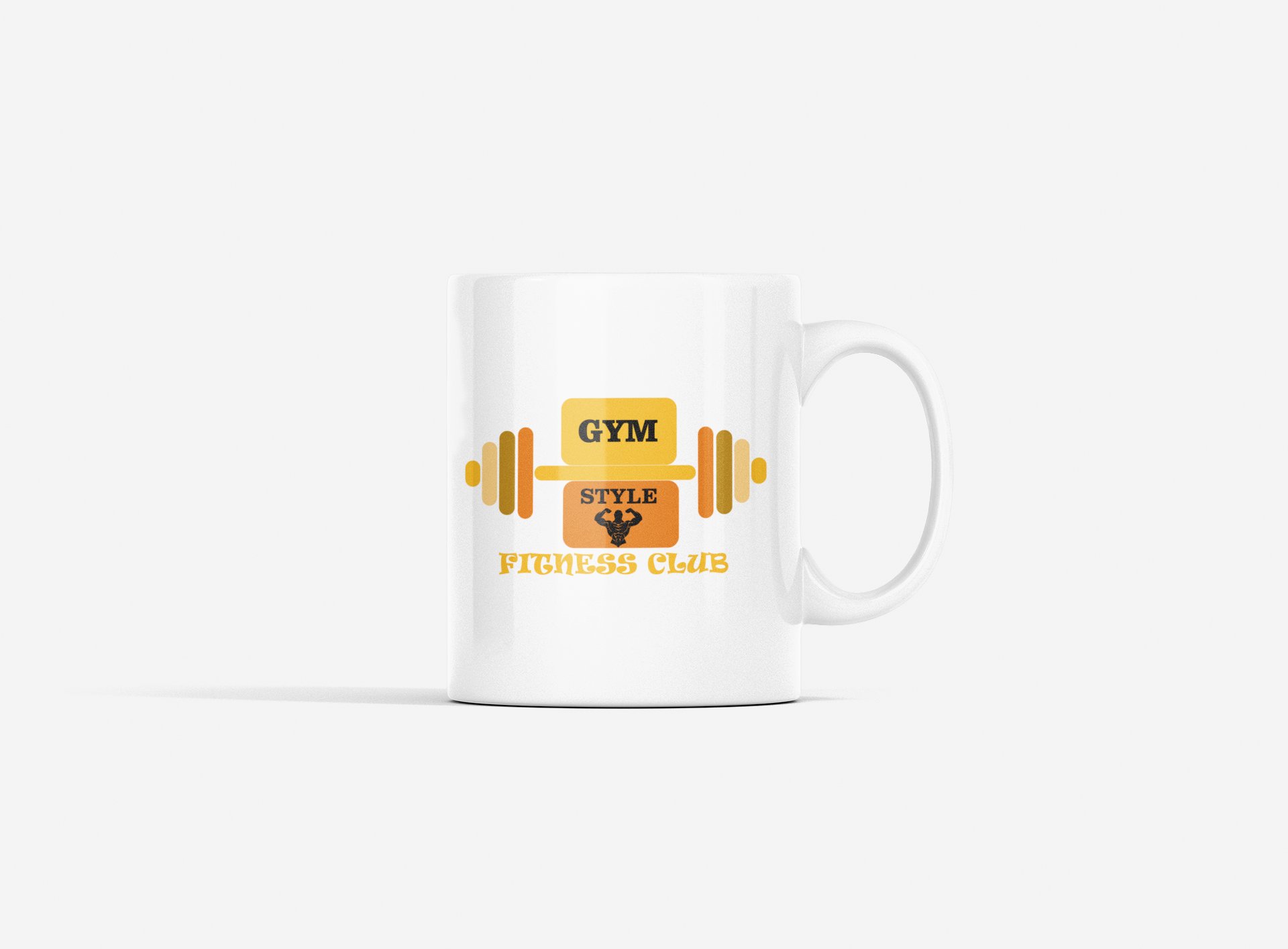 Gym Style, Fitness Club, (BG Orange and Yellow) - gym themed printed ceramic white coffee and tea mugs/ cups for gym lovers