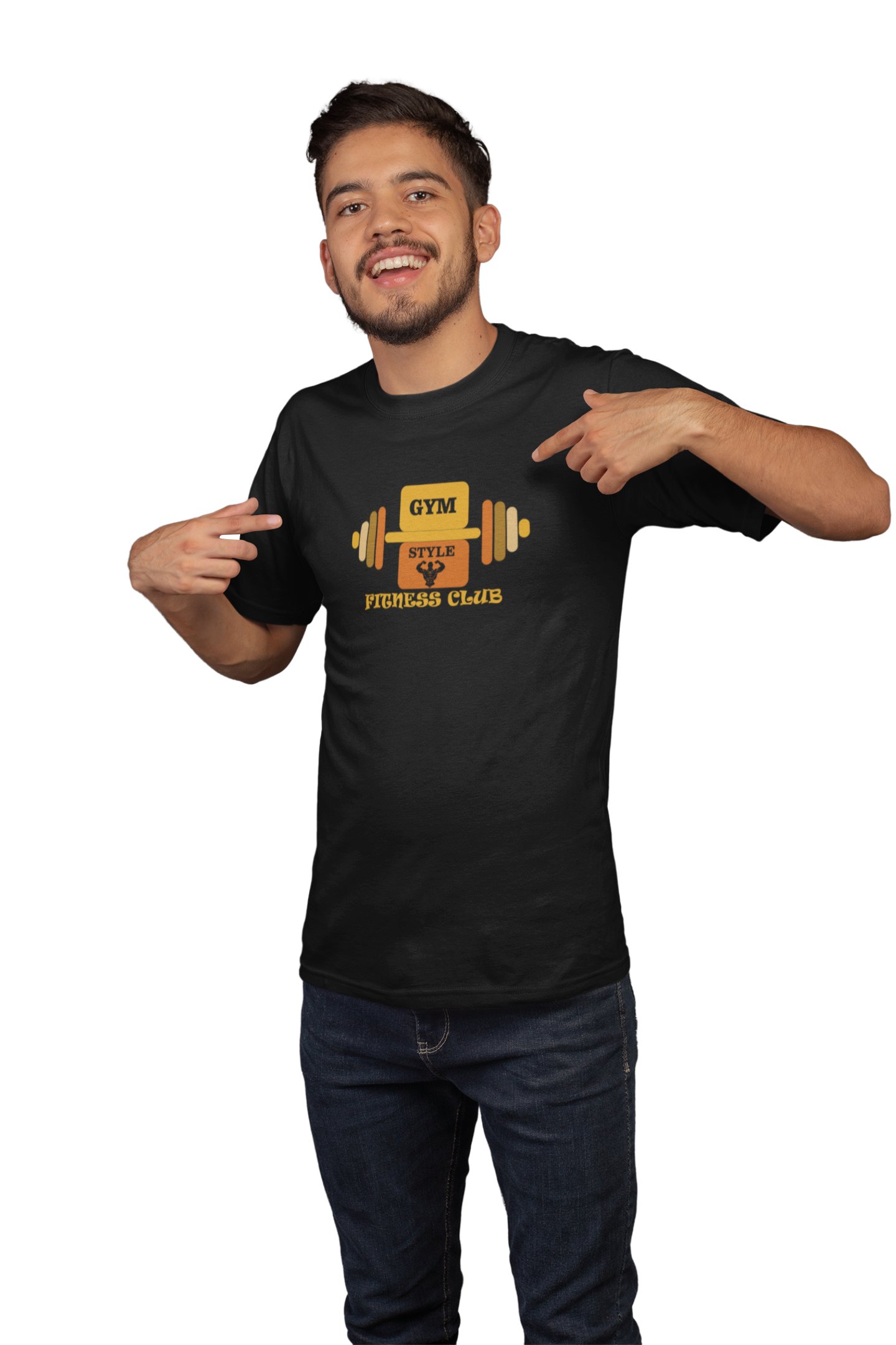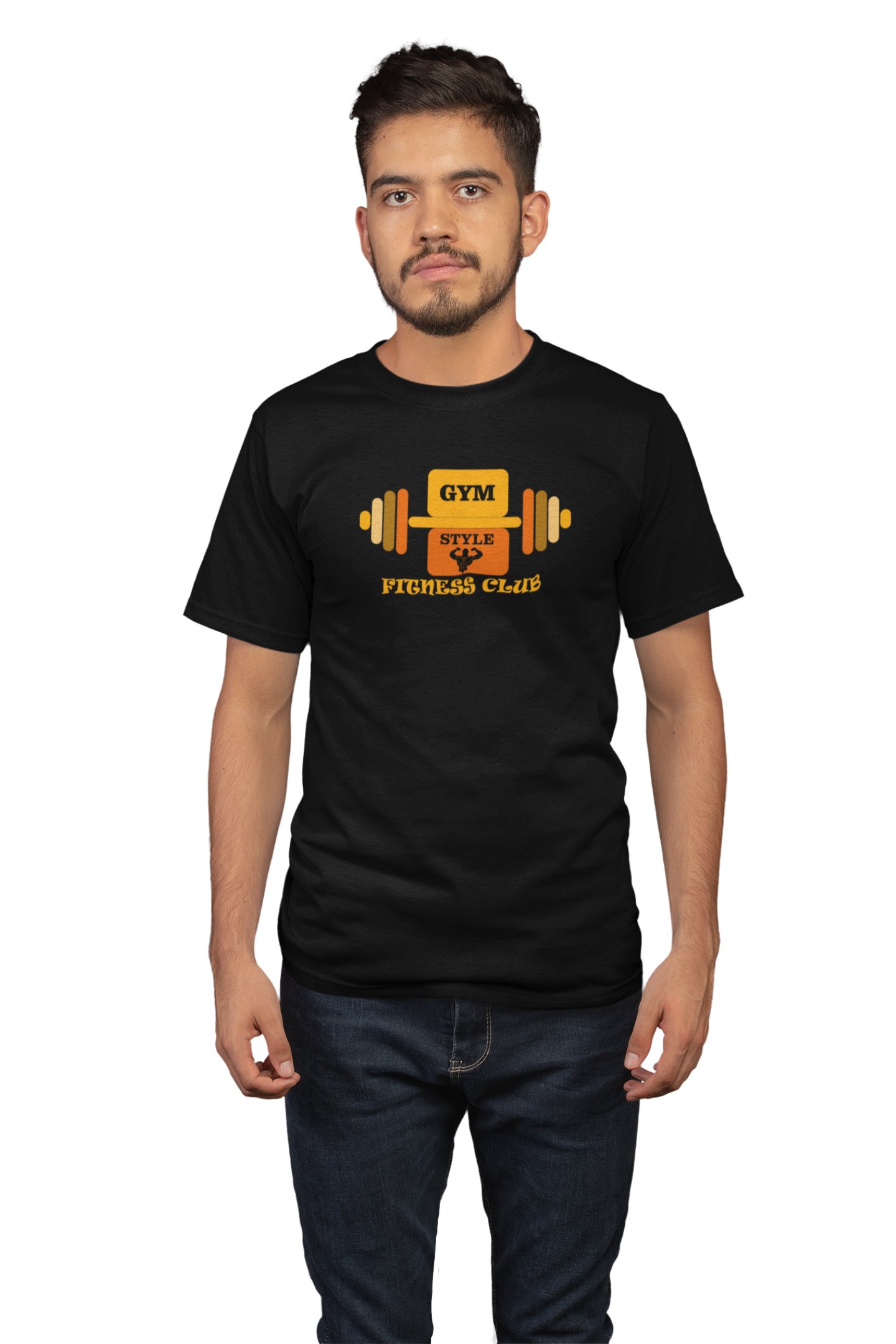 Gym, Style, Fitness Club, (BG Yellow and Orange), Round Neck Gym Tshirt (Black Tshirt) - Clothes for Gym Lovers - Foremost Gifting Material for Your Friends and Close Ones