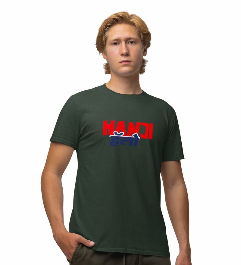 Haanji Hello Green Round Neck Cotton Half Sleeved Womens T Shirt with Printed Graphics