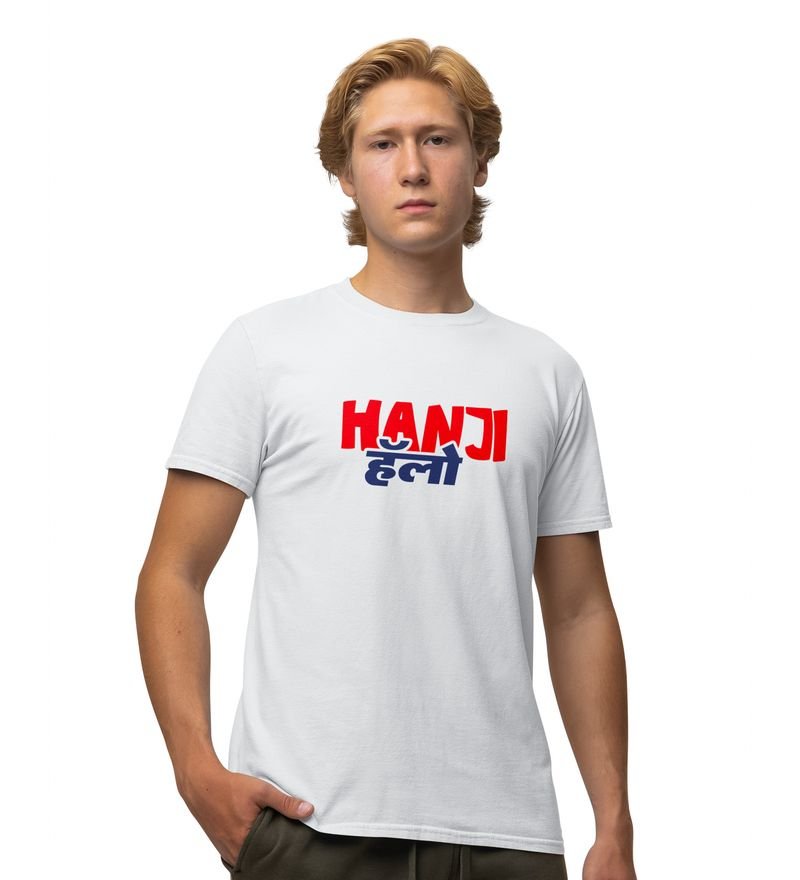 Haanji Hello White Round Neck Cotton Half Sleeved Womens T Shirt with Printed Graphics