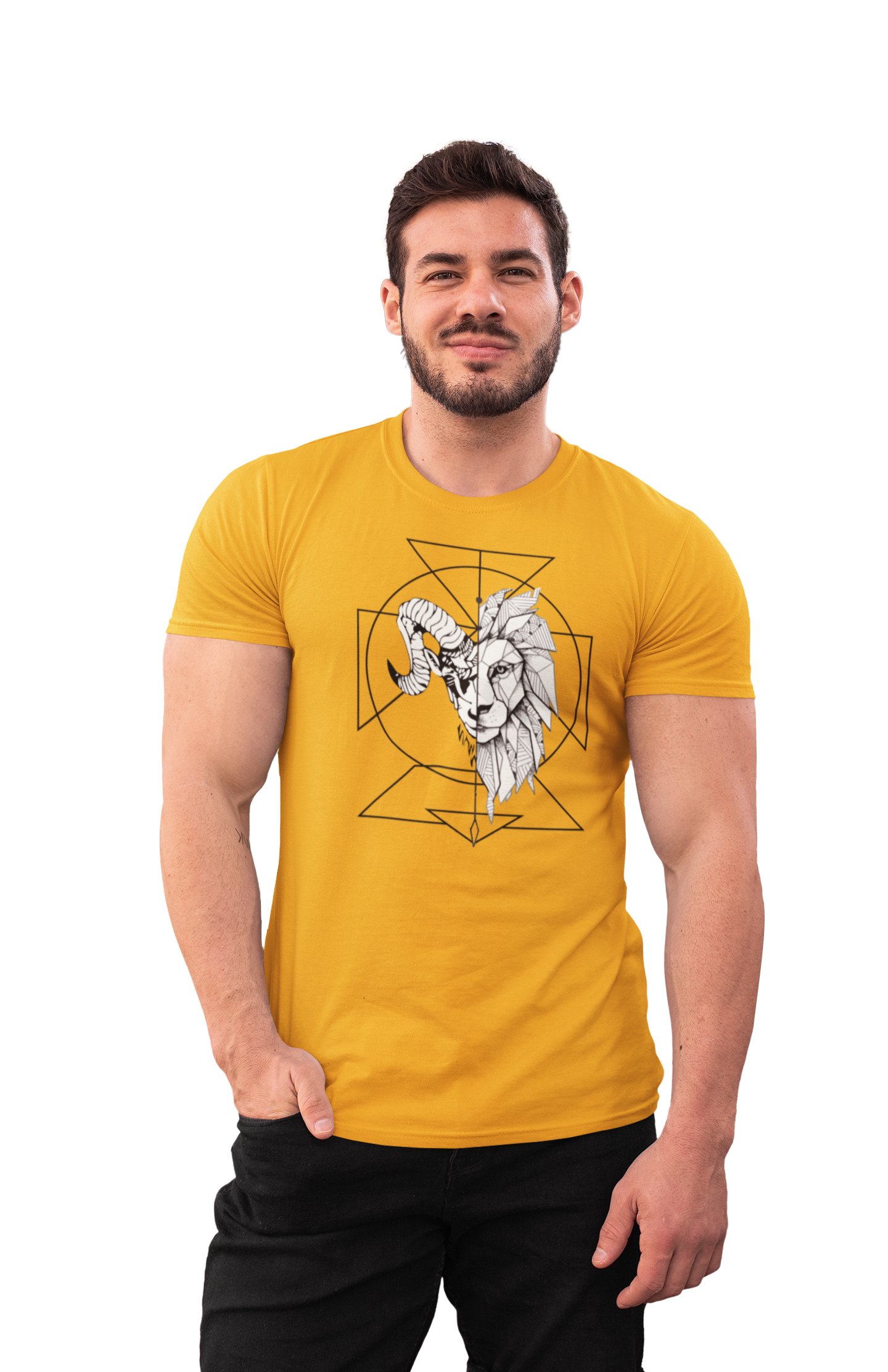Half Ram, Half lion, (Yellow T) - Printed Zodiac Sign Tshirts - Made especially for astrology lovers people