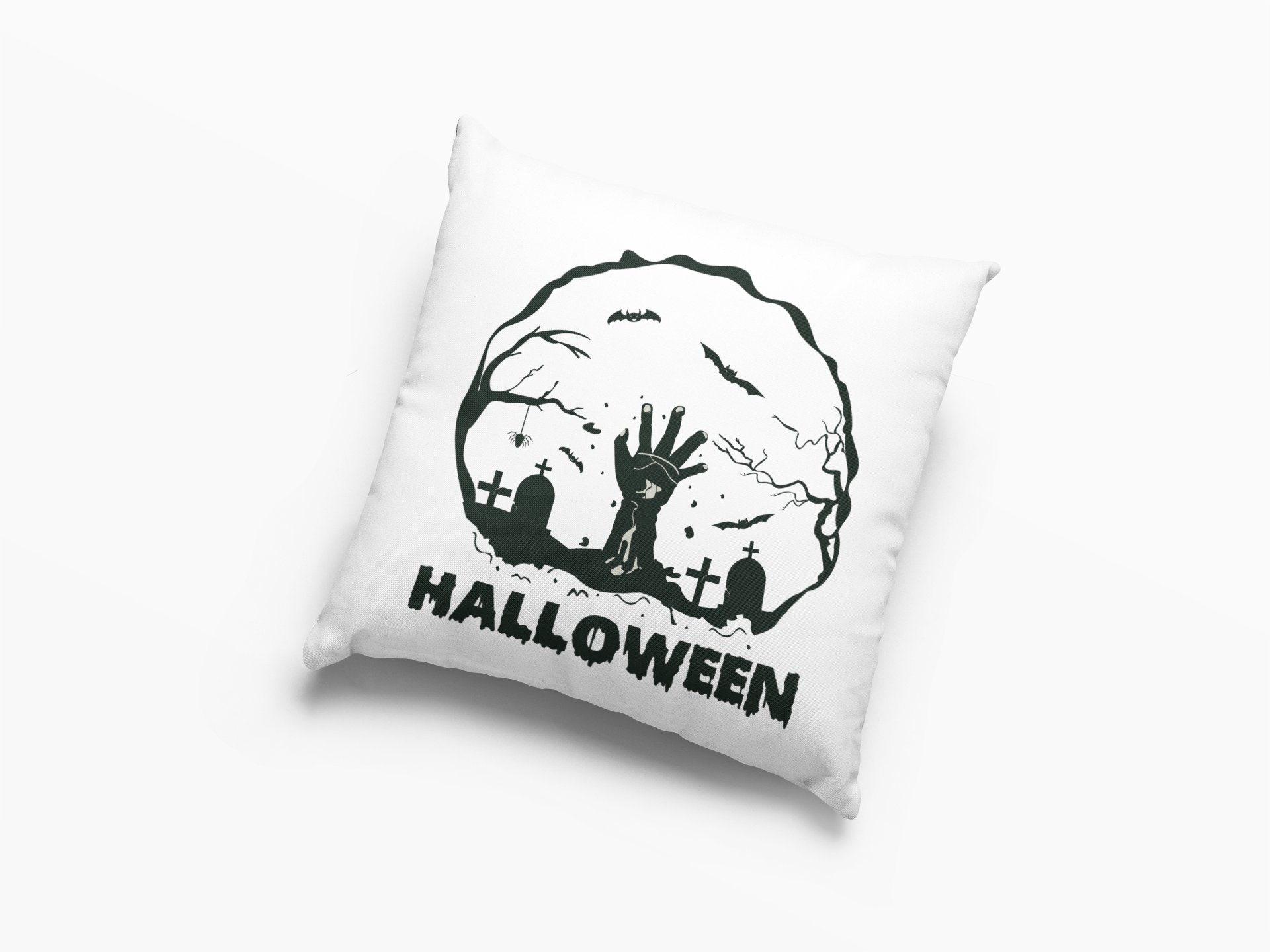 Halloween, graveyard, (BG white) -Halloween Theme Pillow Covers (Pack Of 2)