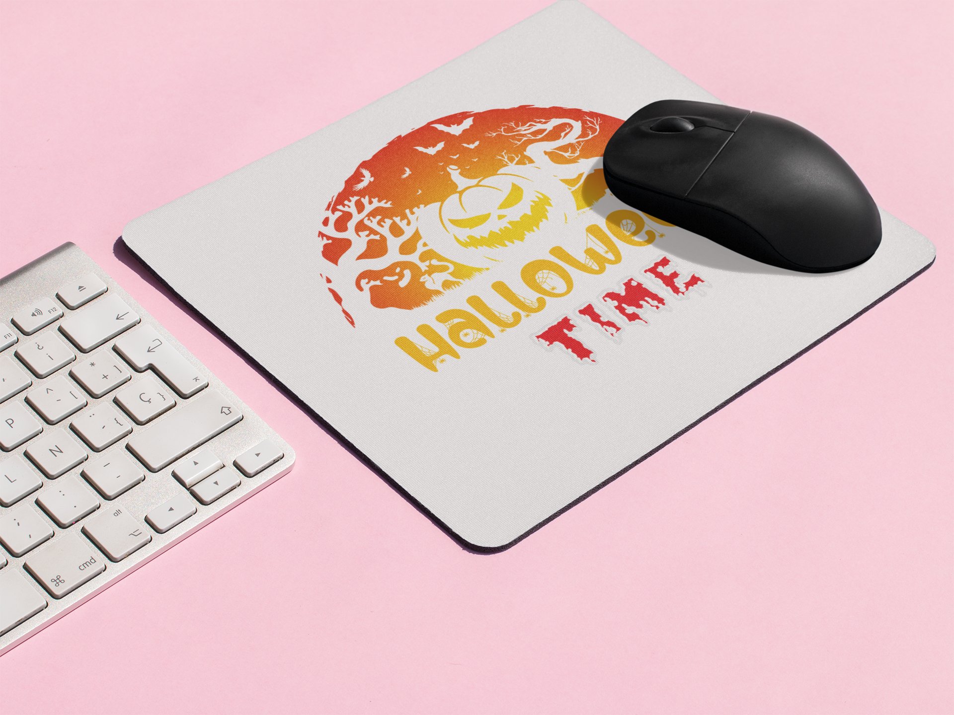 Halloween Time -Evil Pumpkin And Trees Inside The Semi Circle -Halloween Theme Mousepads