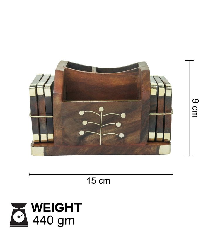 Hand Crafted Wooden Pen Holder With Coaster Holder For Tea And Coffee Set of 5