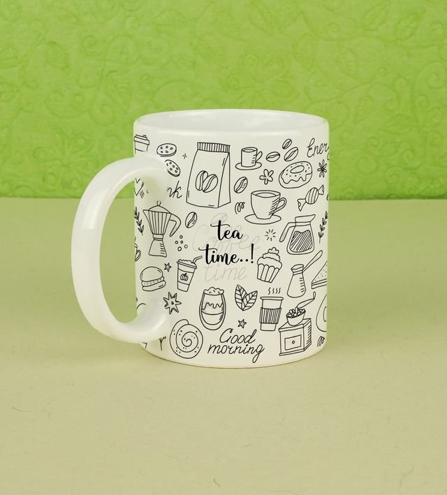 Bring a little doodle magic to your tea or coffee time! This 250ml printed mug features hand-drawn sketches of all your favorite sips and snacks