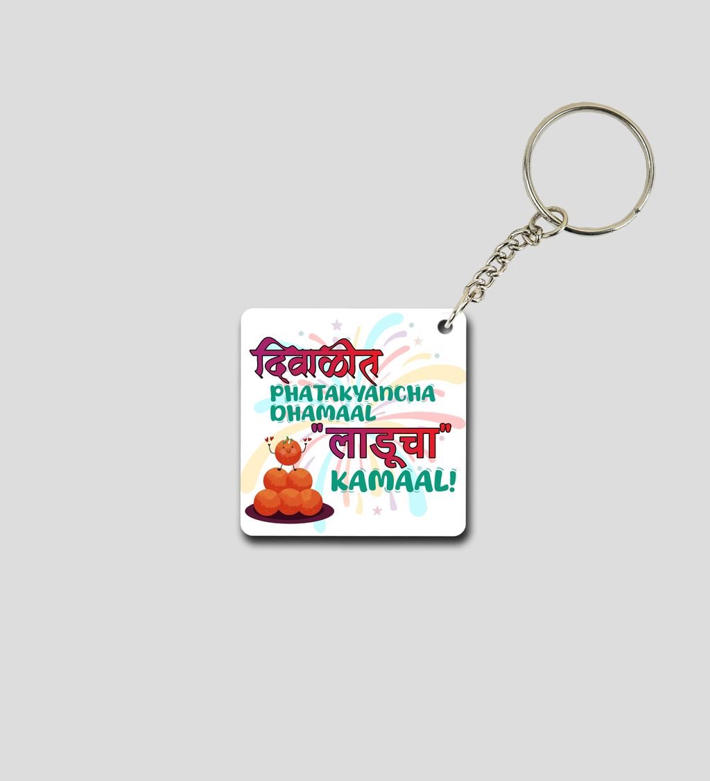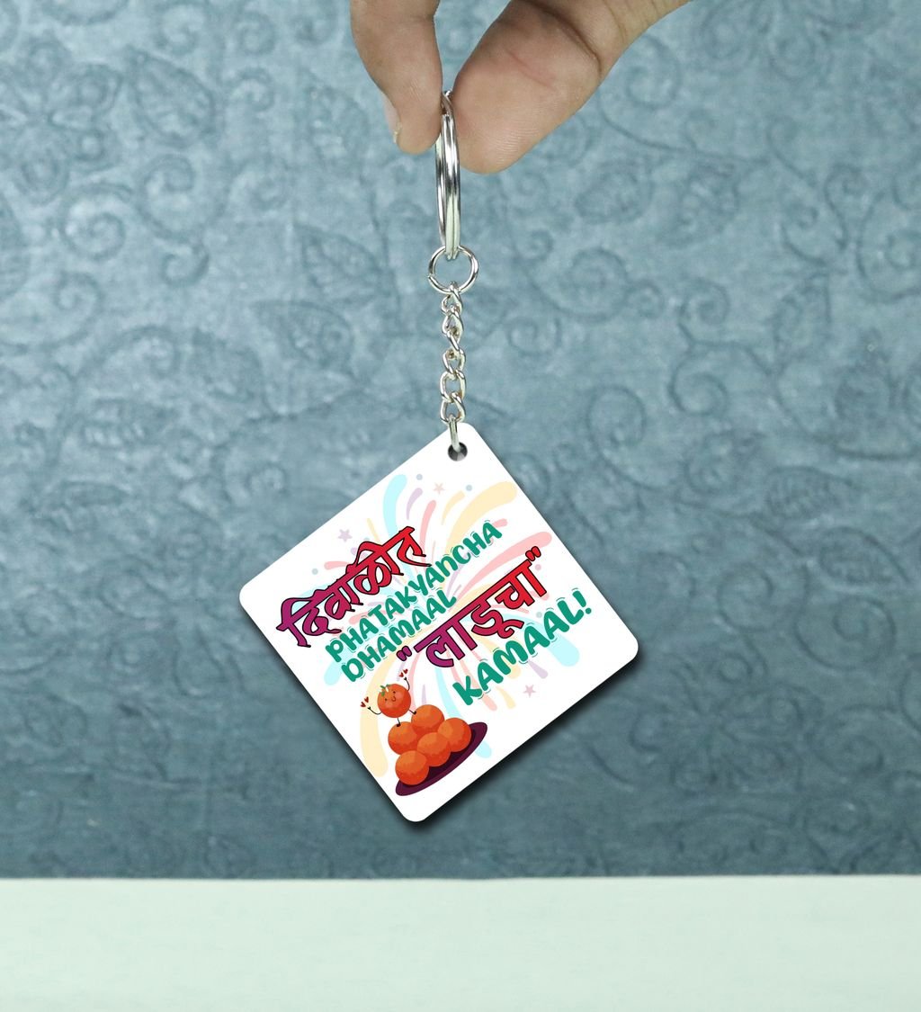 Happiness in Every Spark Diwali Slogan Printed Square Keychain