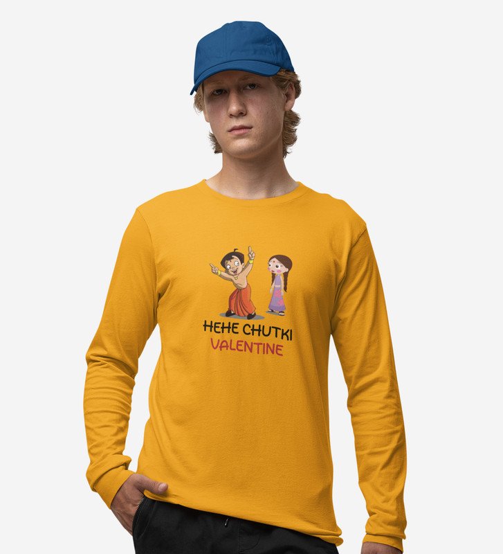 Happy Couples: Attractive Printed (yellow) Full Sleeve T-Shirt For Singles