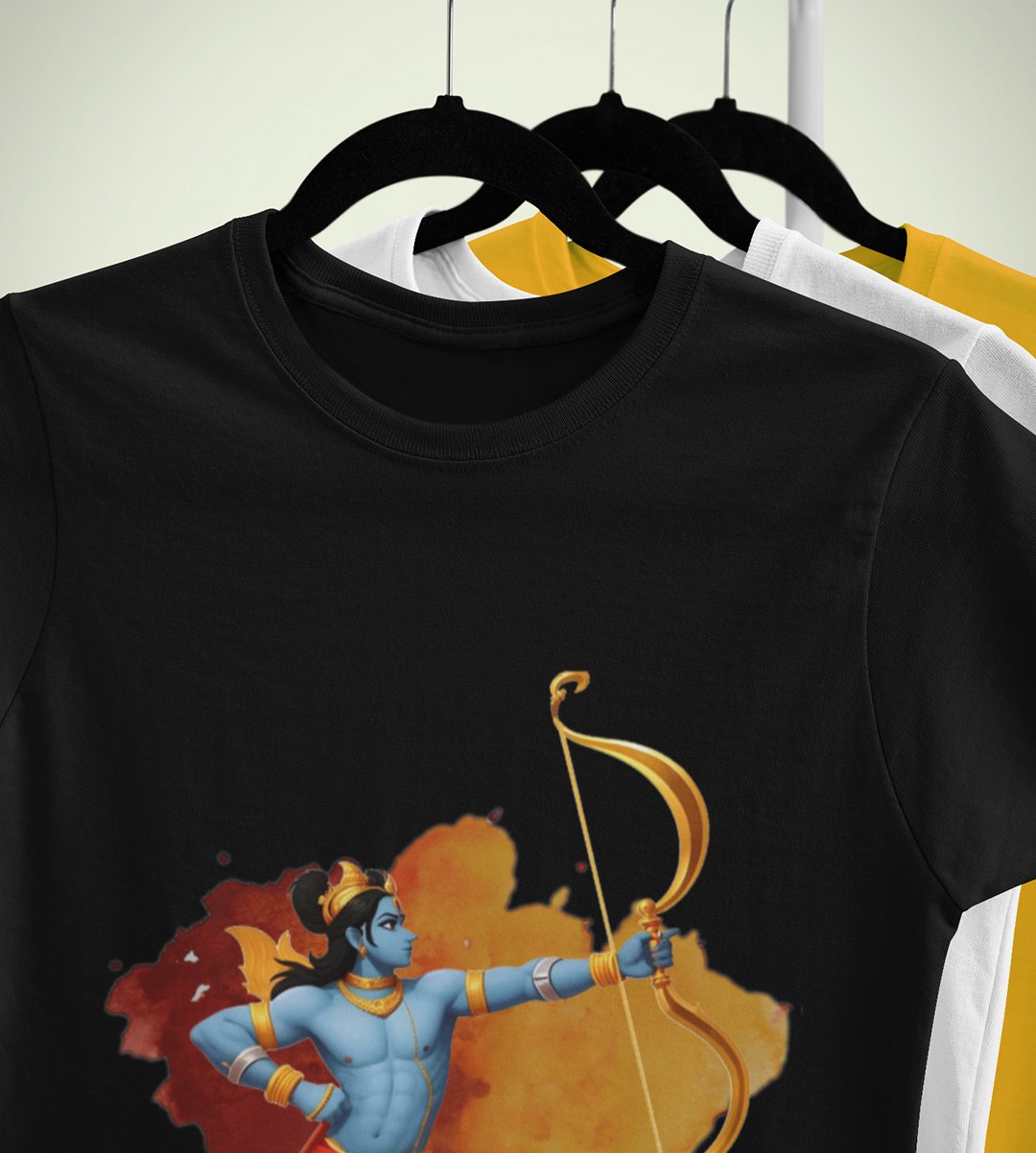 Navratri is a very auspicious festival for hindus. It takes place at the beginning of October and sometimes September. Enjoy the 9 days of festivities with full zeal and make yourself submerged in the love of Maa Durga. Navratri is also known as Durga Puja. And with this Tees, you can shine like a star during this festive season with our navratri themed cotton half sleeved Tshirts. You can pair our t-shirts with trousers and denim of your choice and make it a weekday smart casual or weekend wear. This is durable. This tshirt is smooth and soft which makes you comfortable to wear during all seasons. The printing in it is durable and odourless. It has five sizes, S,M,L,XL,XXL. The Tshirt colour is intact even after repeated washes. It can be kept in your wardrobe and hangers. Please avoid washing mashine to clean this Tee, it may affect the print. Hand wash only. We have brought you many navratri related designs printed on our different colour Tshirts to choose from. Grab it now.