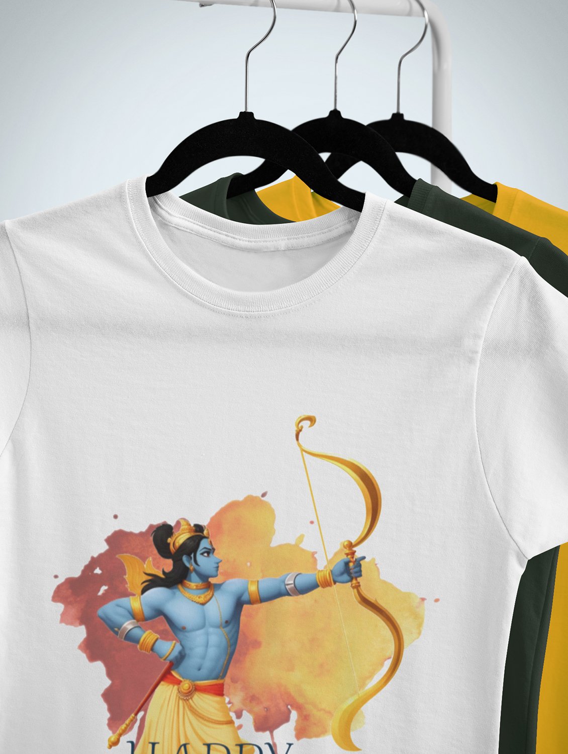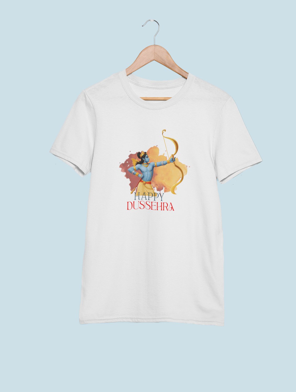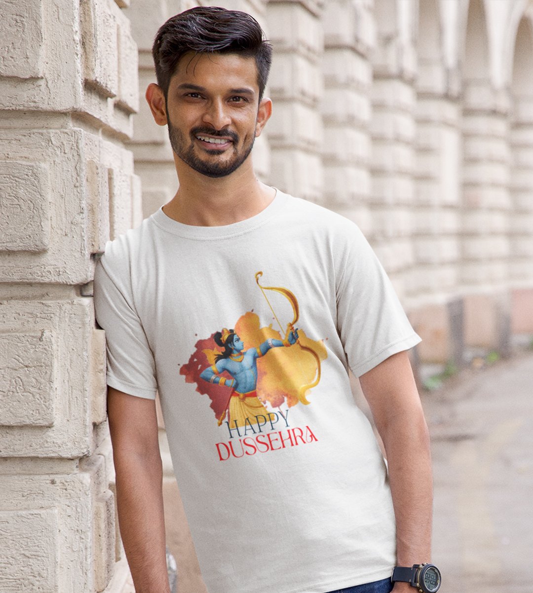 Happy Dussehra printed unisex adults round neck cotton half-sleeve white tshirt specially for Navratri festival/ Durga puja