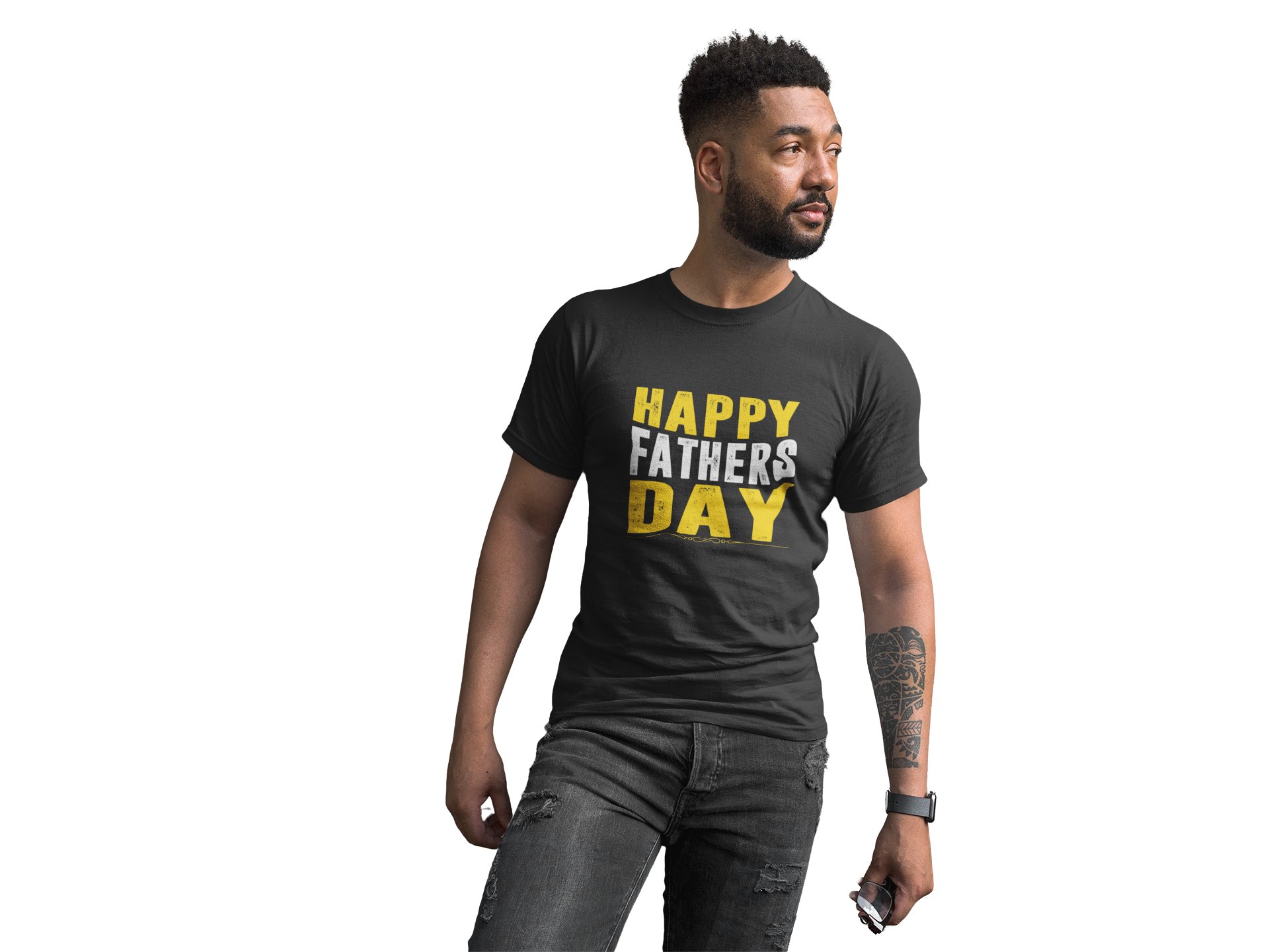 Happy fathers day -printed family themed cotton blended half-sleeve t-shirts made for men (black)