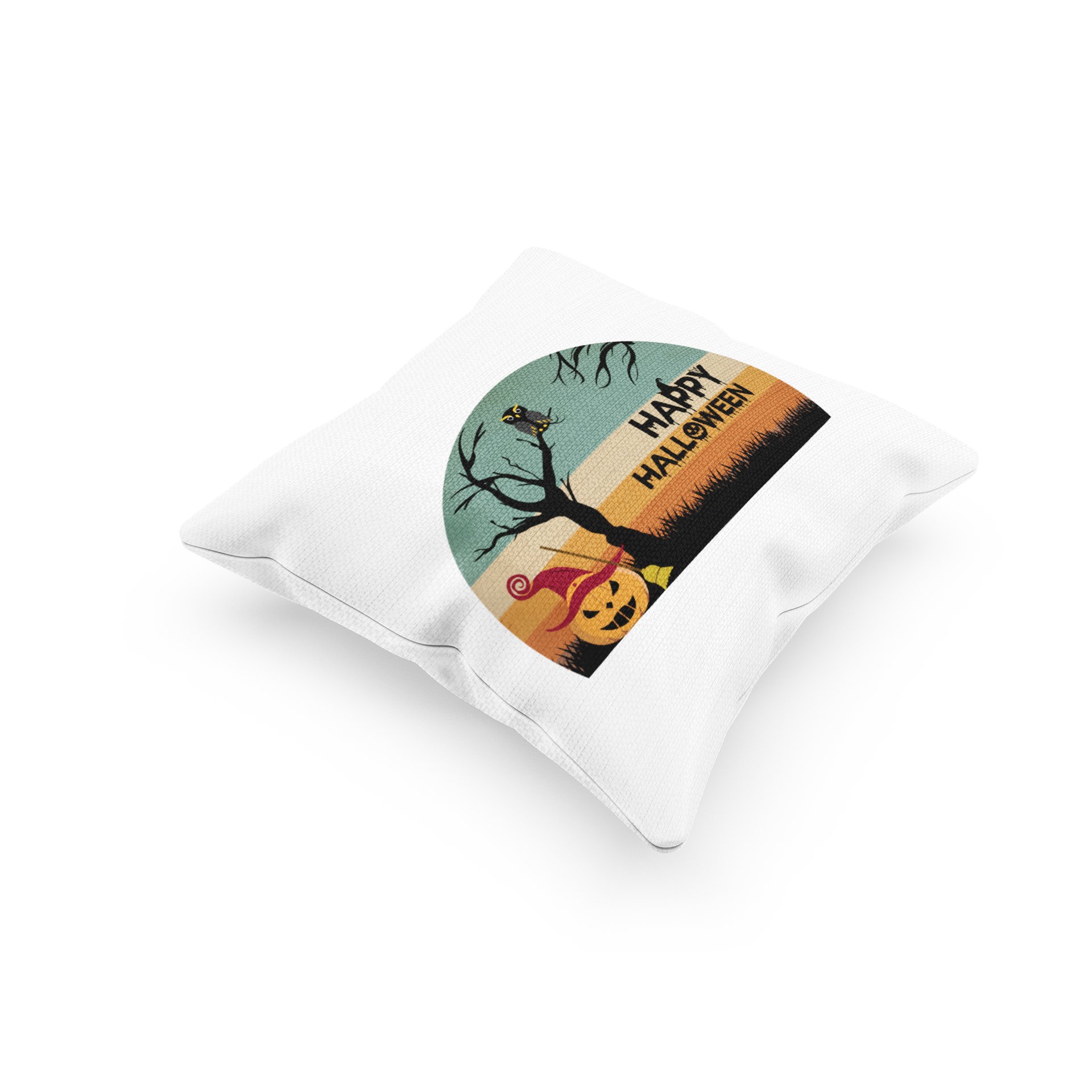 Happy Halloween Black text -Pumpkin And Trees -Halloween Theme Pillow Covers (Pack Of 2)