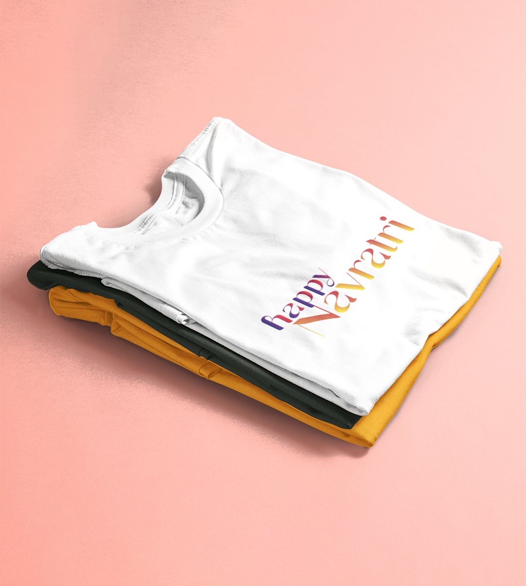 Navratri is a very auspicious festival for hindus. It takes place at the beginning of October and sometimes September. Enjoy the 9 days of festivities with full zeal and make yourself submerged in the love of Maa Durga. Navratri is also known as Durga Puja. And with this Tees, you can shine like a star during this festive season with our navratri themed cotton half sleeved Tshirts. You can pair our t-shirts with trousers and denim of your choice and make it a weekday smart casual or weekend wear. This is durable. This tshirt is smooth and soft which makes you comfortable to wear during all seasons. The printing in it is durable and odourless. It has five sizes, S,M,L,XL,XXL. The Tshirt colour is intact even after repeated washes. It can be kept in your wardrobe and hangers. Please avoid washing mashine to clean this Tee, it may affect the print. Hand wash only. We have brought you many navratri related designs printed on our different colour Tshirts to choose from. Grab it now.