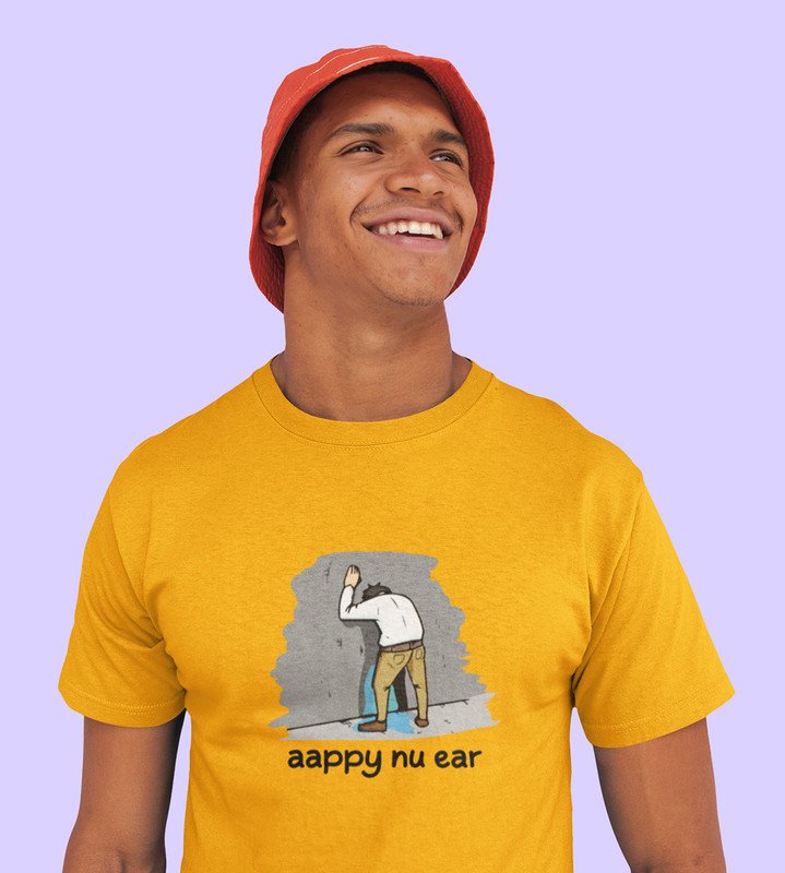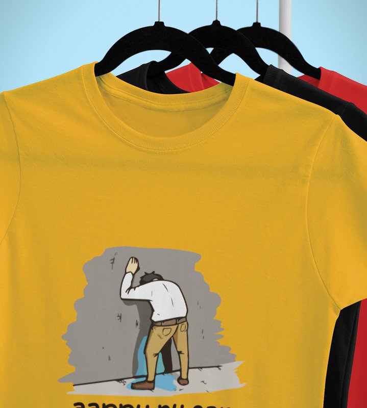Happy New Year Oyee! Yellow New Year Printed T-shirt For Mens