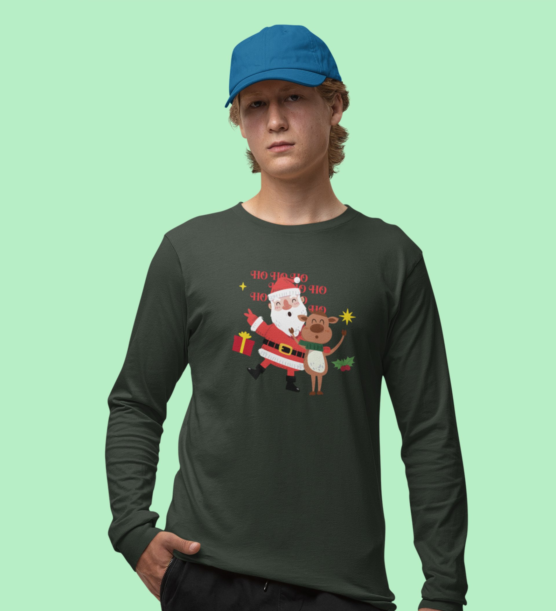 Happy Santa: Best DesignerFull Sleeve T-shirt Green Best Gift For Kids