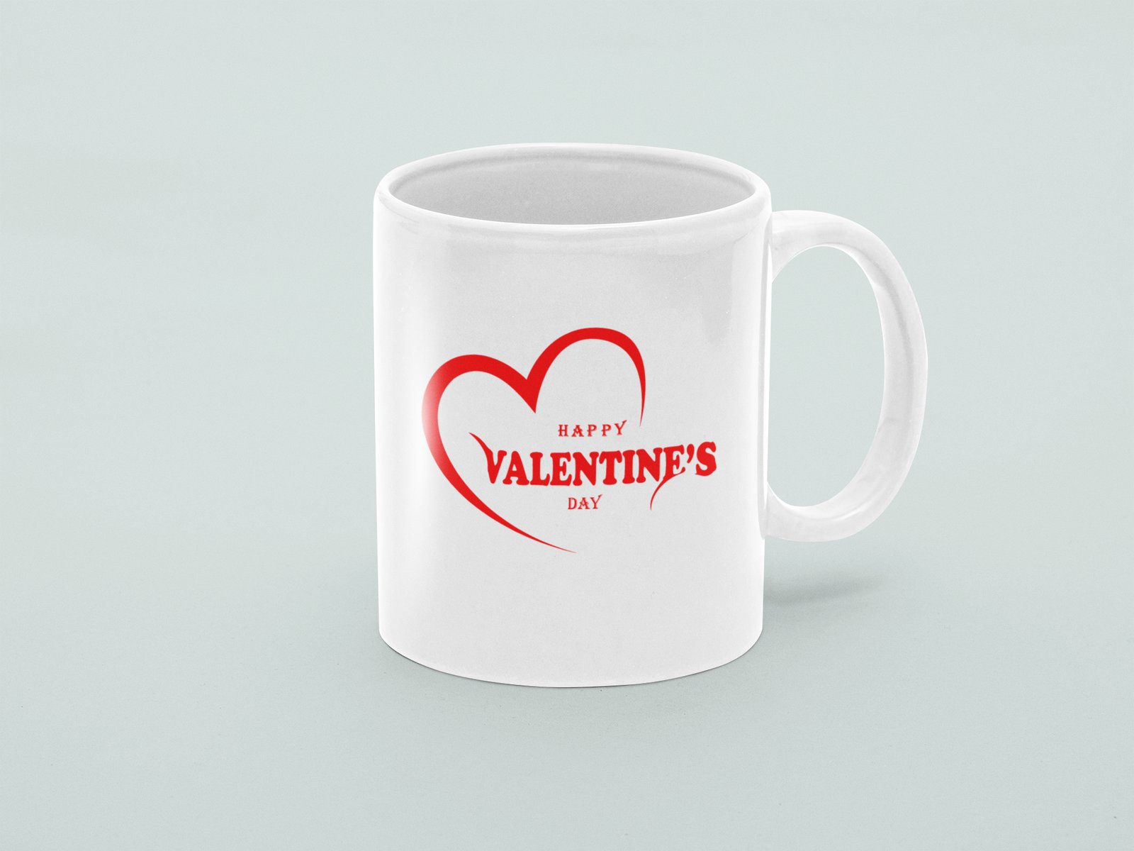 Happy Valentines Day text in Red - valentine themed printed ceramic white coffee and tea mugs/ cups