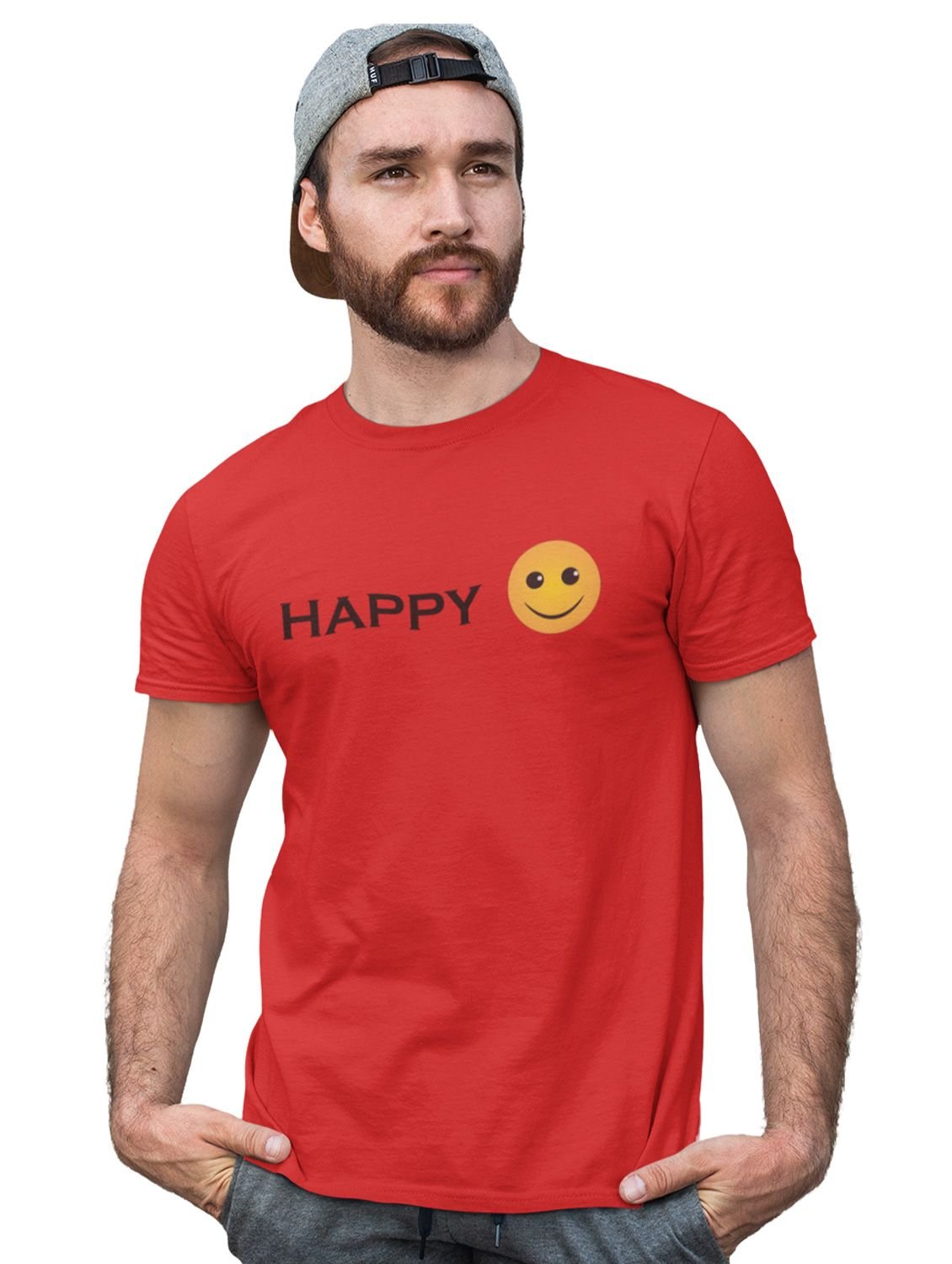 Happy Written Text Emoji T-shirt (Red) - Clothes for Emoji Lovers - Foremost Gifting Material for Your Friends and Close Ones