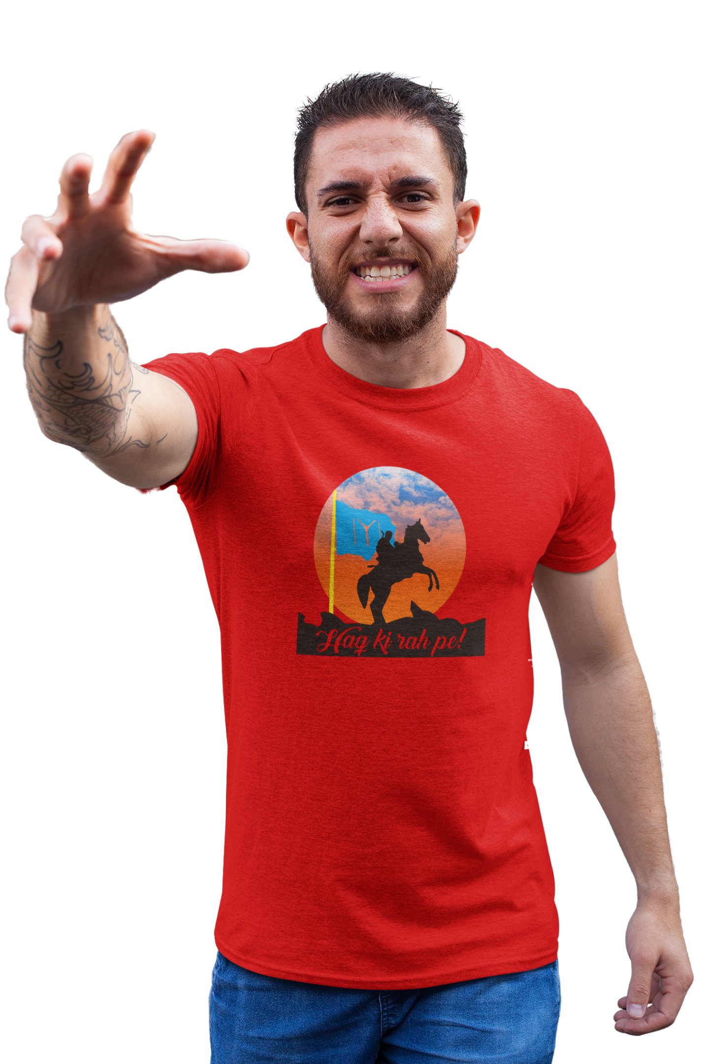 Haq ki Raah pe - Red - The Ertugrul Ghazi - 100% cotton t-shirt for Men with soft feel and a stylish cut