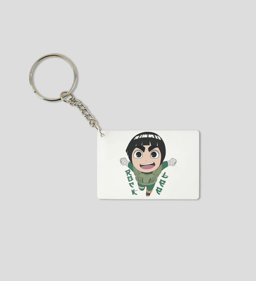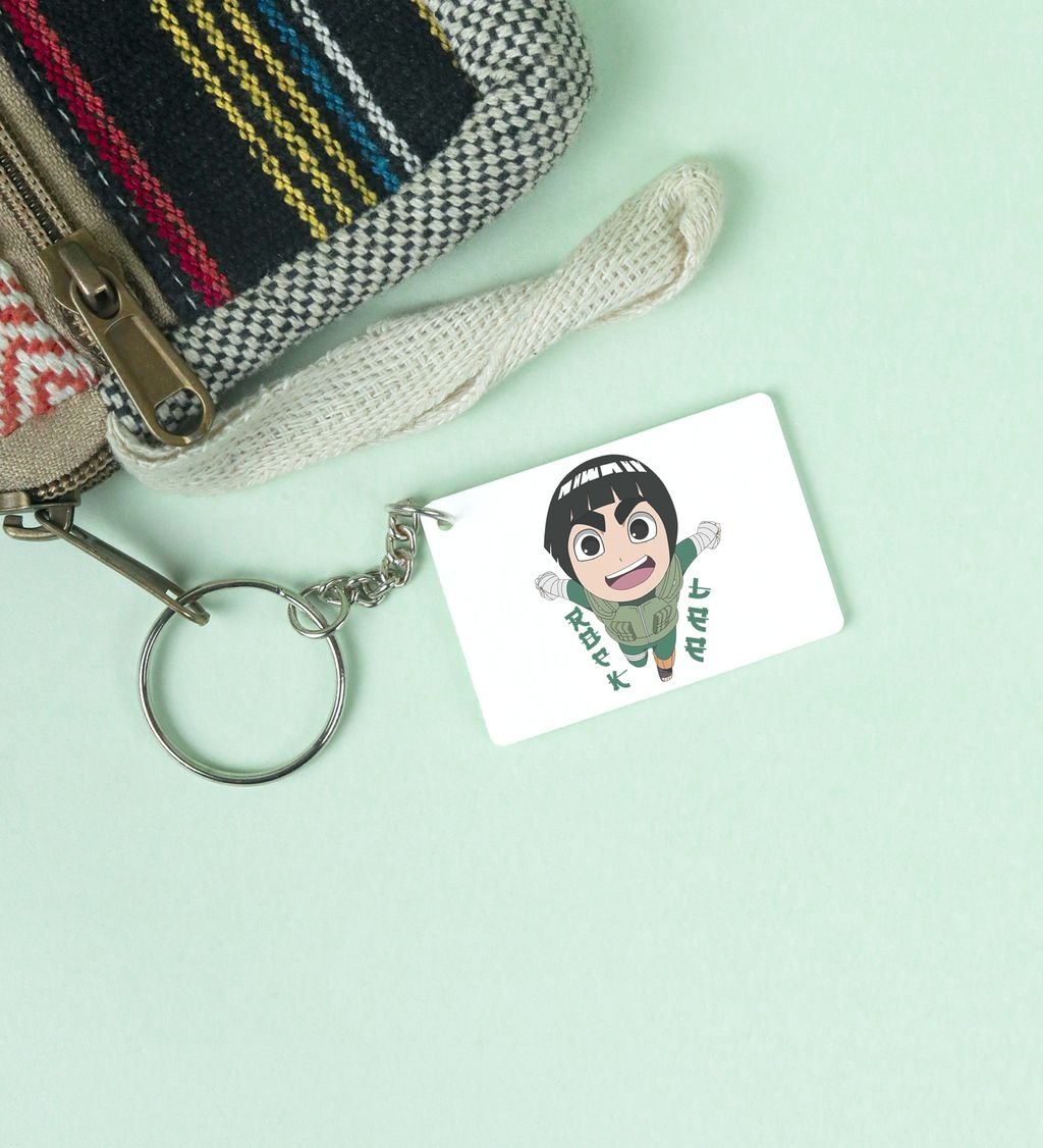 Hard Work Hero Rock Lee Printed White Anime Keychains Pack Of 2