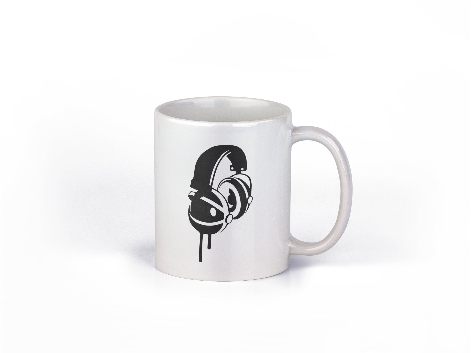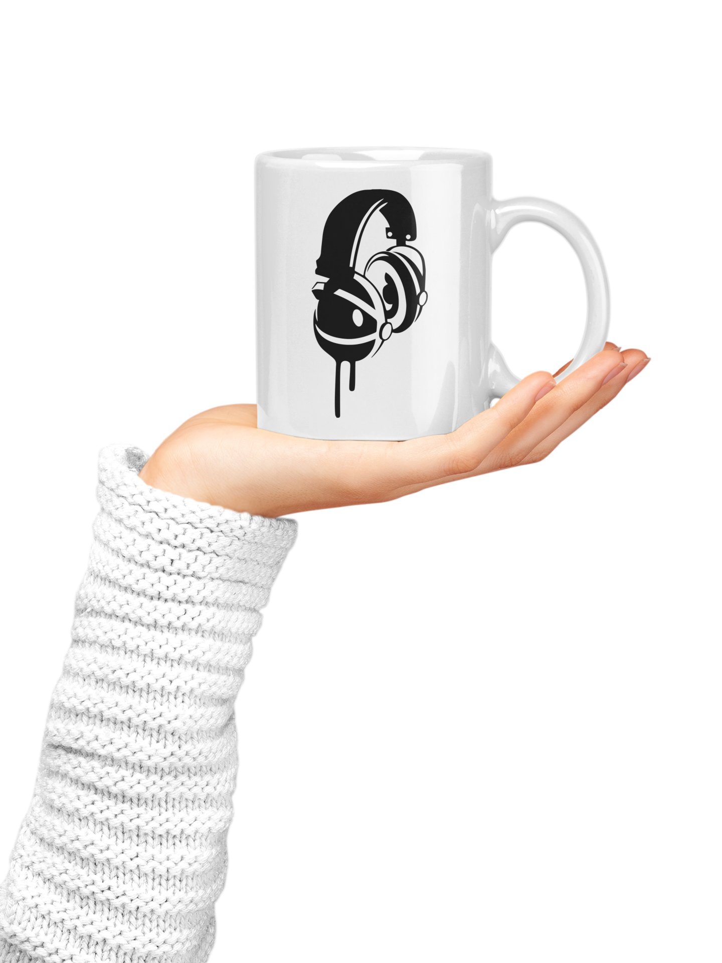 Headphone base- music themed printed ceramic white coffee and tea mugs/ cups for music lovers