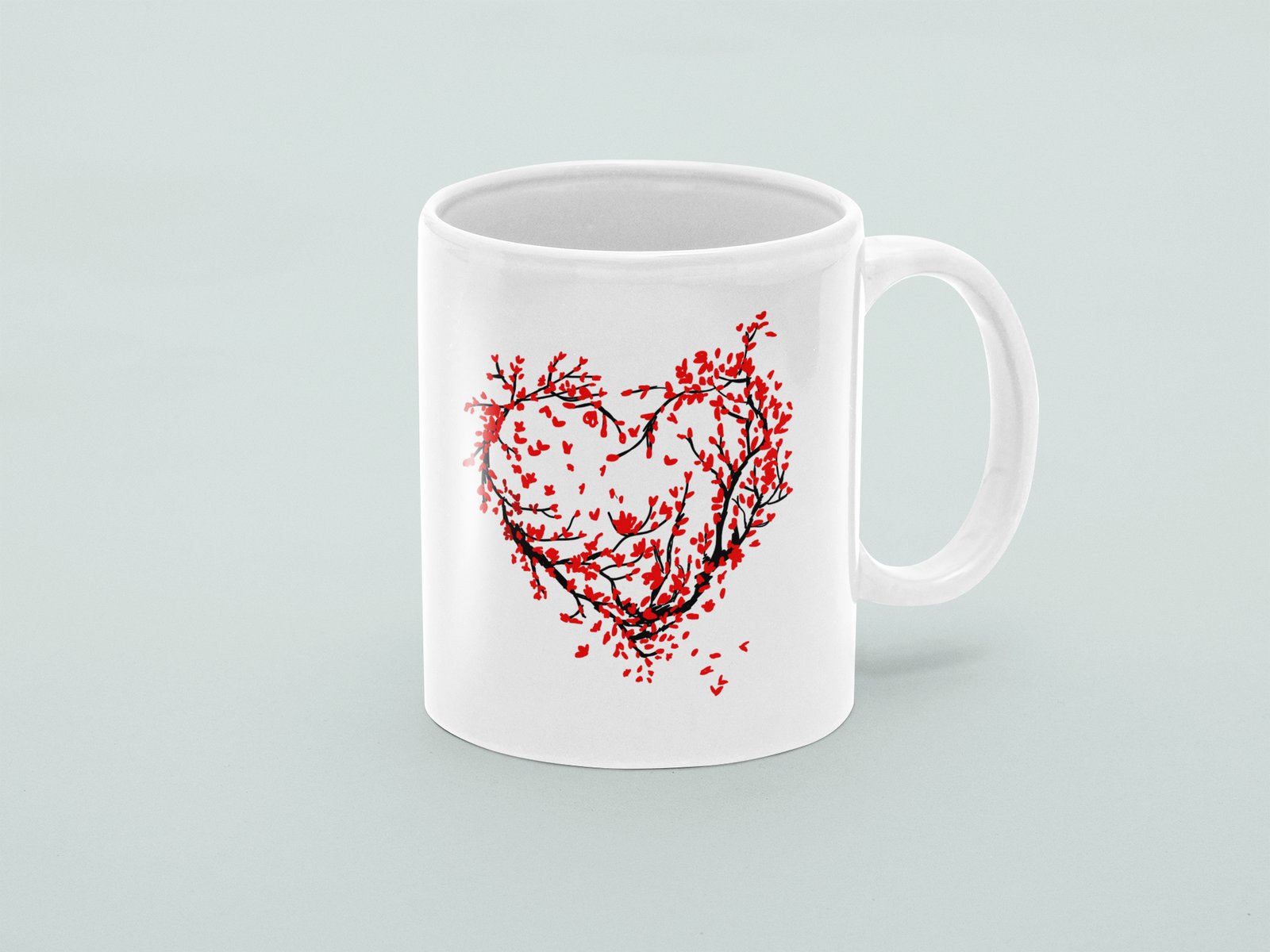 Heart Frame Of Tree Branches And Small Red Flowers - Printed Coffee Mugs For Valentines Day