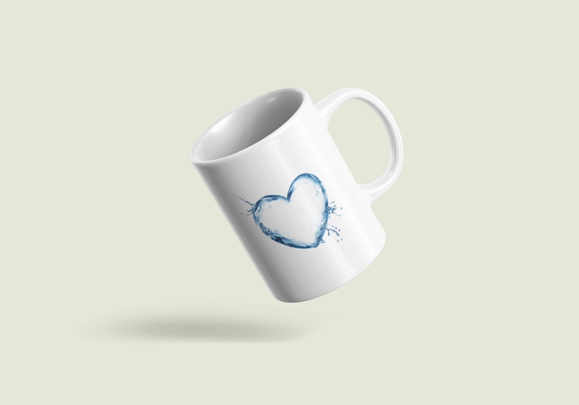 Heart Water Bubble - valentine themed printed ceramic white coffee and tea mugs/ cups