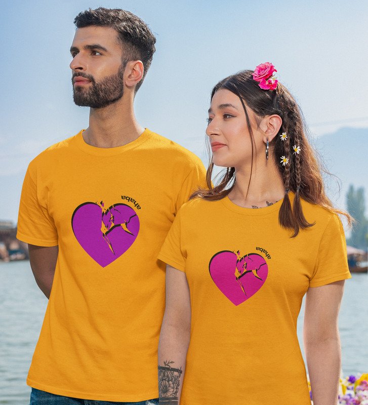 HeartBreaks Printed (Yellow) T-shirts For Couple