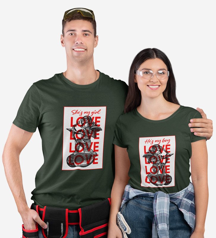 He's My Boy/She's My Girl Printed Couple (green) T-shirts For Couples